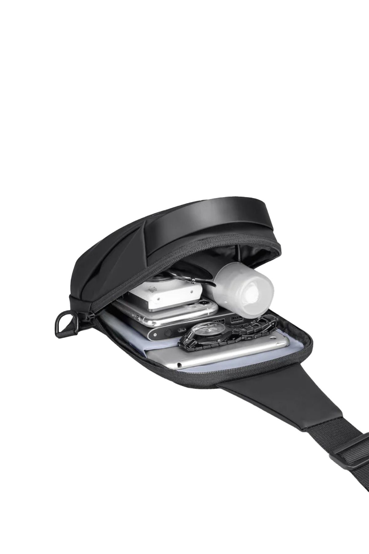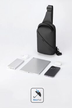 D’VERS Su Geçirmez Siyah Deri Çapraz Askılı Omuz ve Bel Çantası