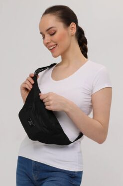 – Sade ve şık tasarımıyla her ortama uyum sağlayan düz desenli siyah bel çantası, günlük kullanım için idealdir