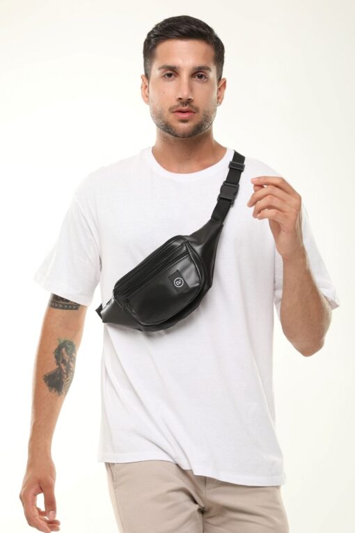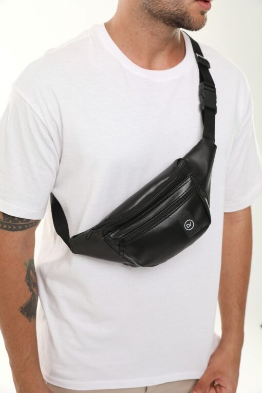 D’VERS Su Geçirmez Siyah Deri Çapraz Askılı Omuz ve Bel Çantası