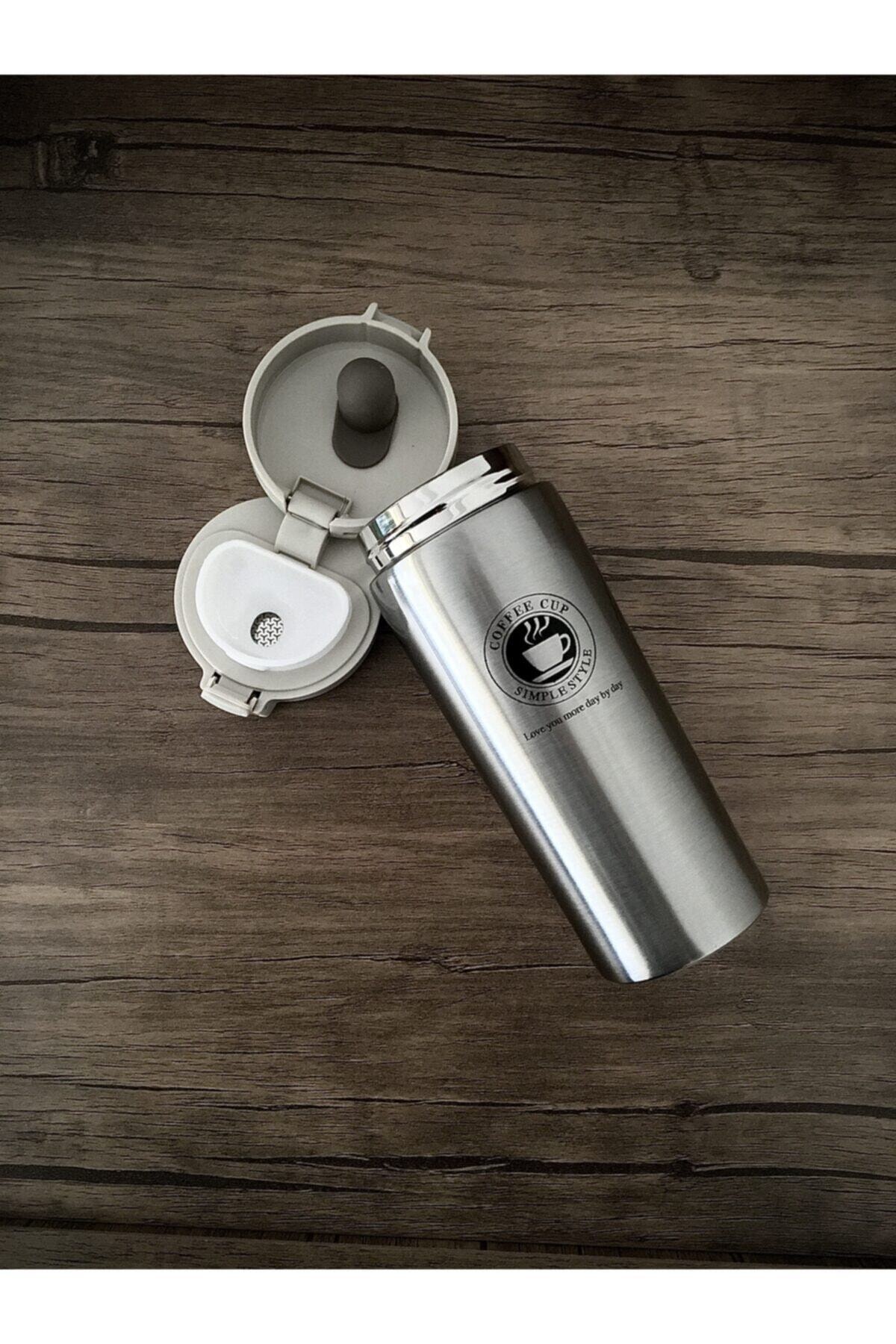 E-Dükkan 500 ml Çift Katmanlı Kaliteli Paslanmaz Çelik Termos Bardak Metalik