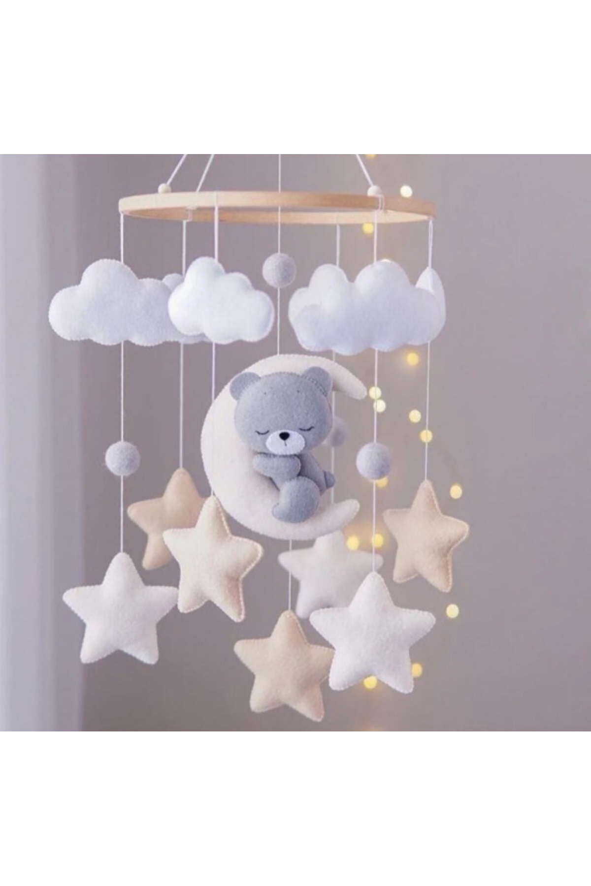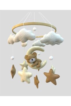 hobiimobiii Dönence (MÜZİKLİ) bebek beşik süsü keçe teddy kumaşlı dönence teddy ayıcık