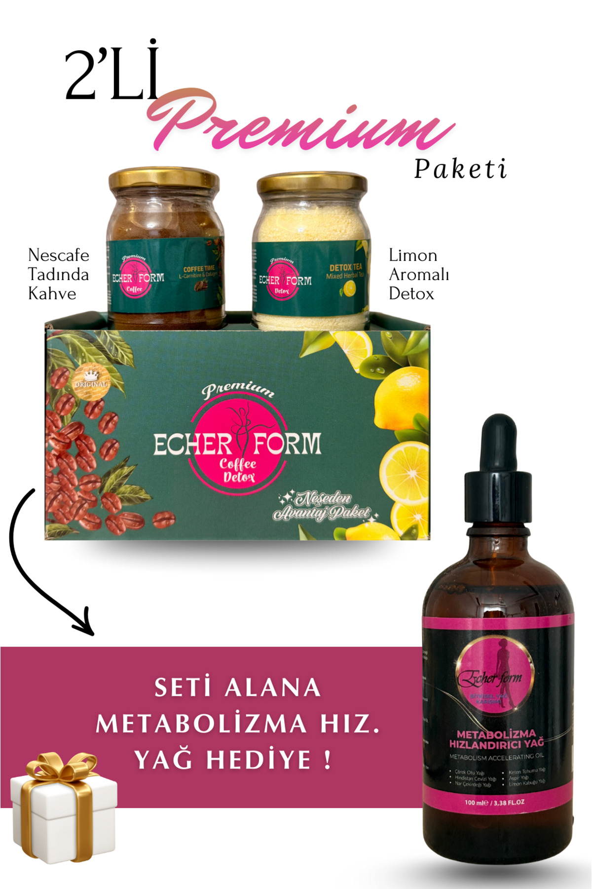 Echer KAHVE & DETOX 2’Lİ PREMİUM – AVANTAJ PAKETİ ( METABOLİZMA HIZ. YAĞ HEDİYELİ)