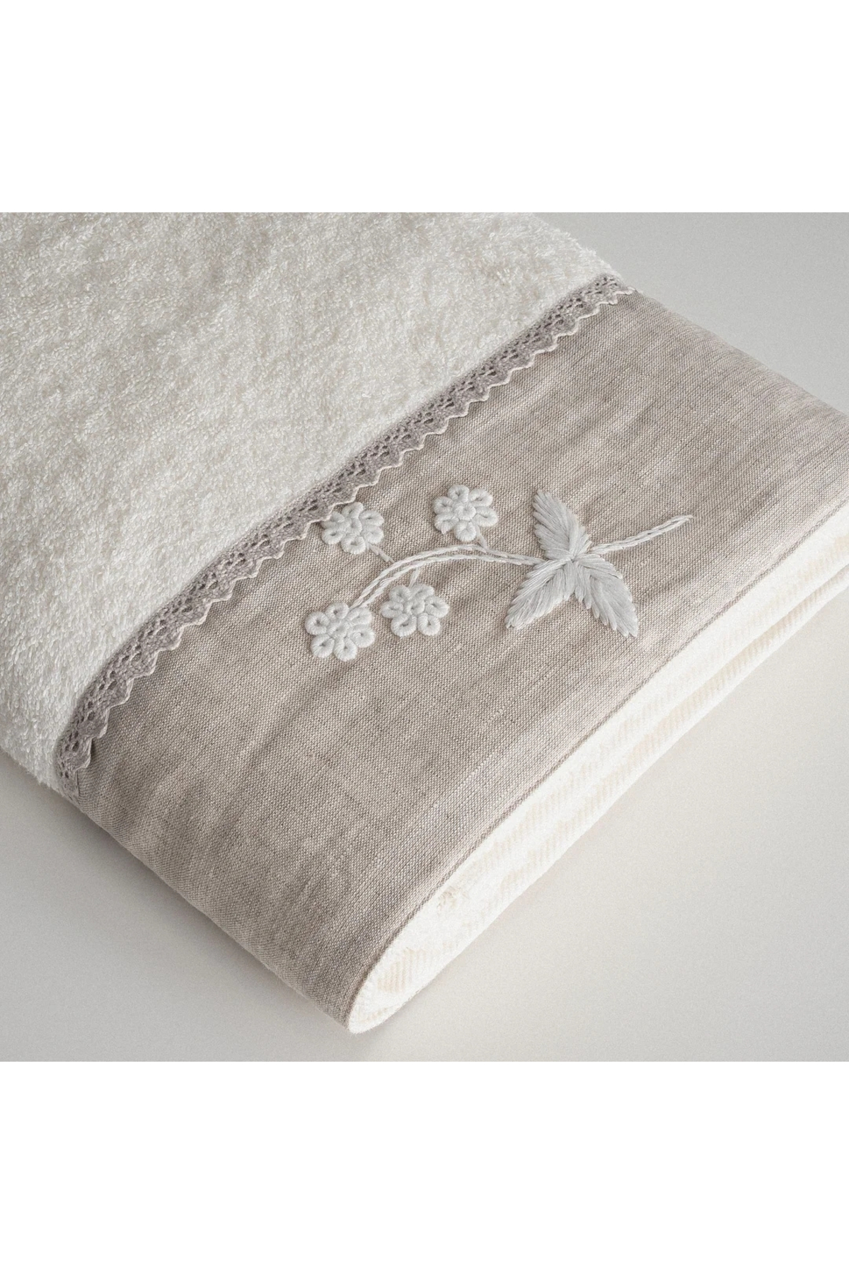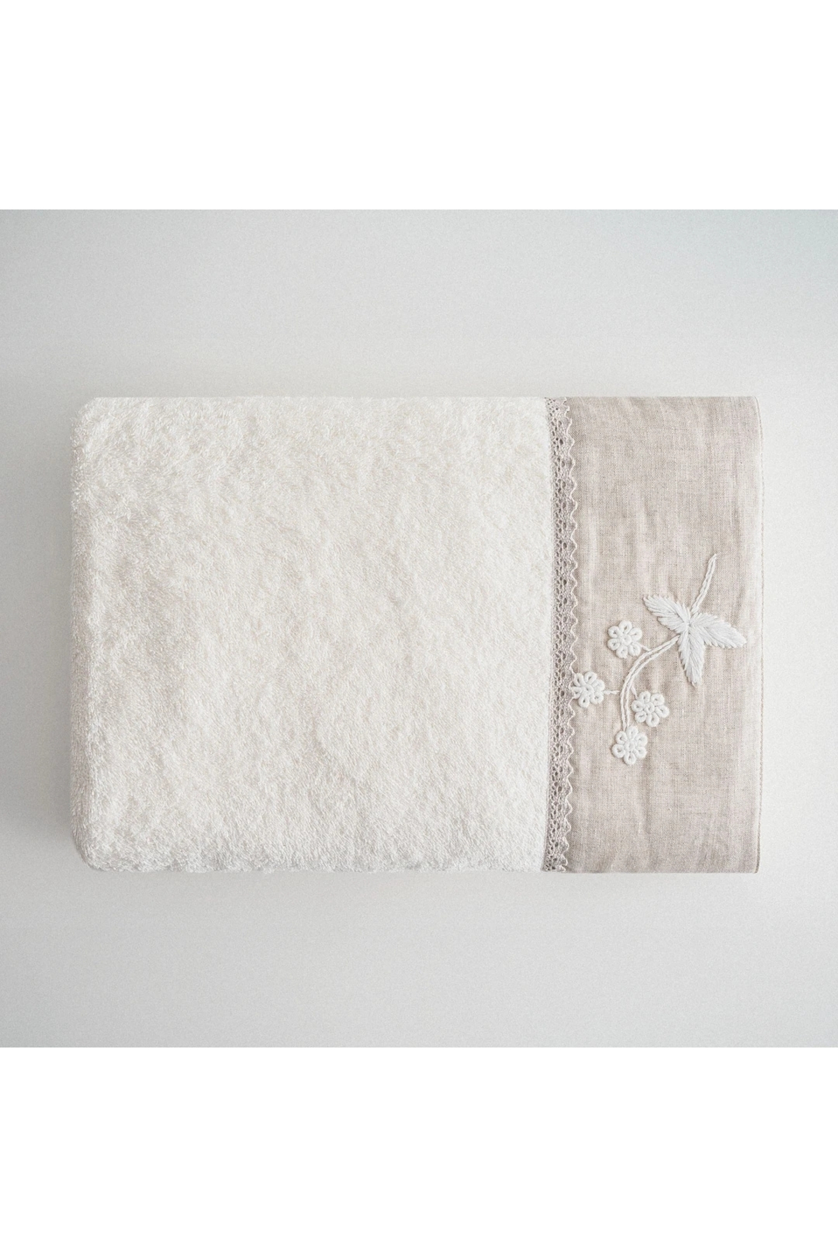 Ecocotton Ayliz Kadın Banyo Havlusu %100 Organik Pamuk El NakışlıKrem 80×150 Cm
