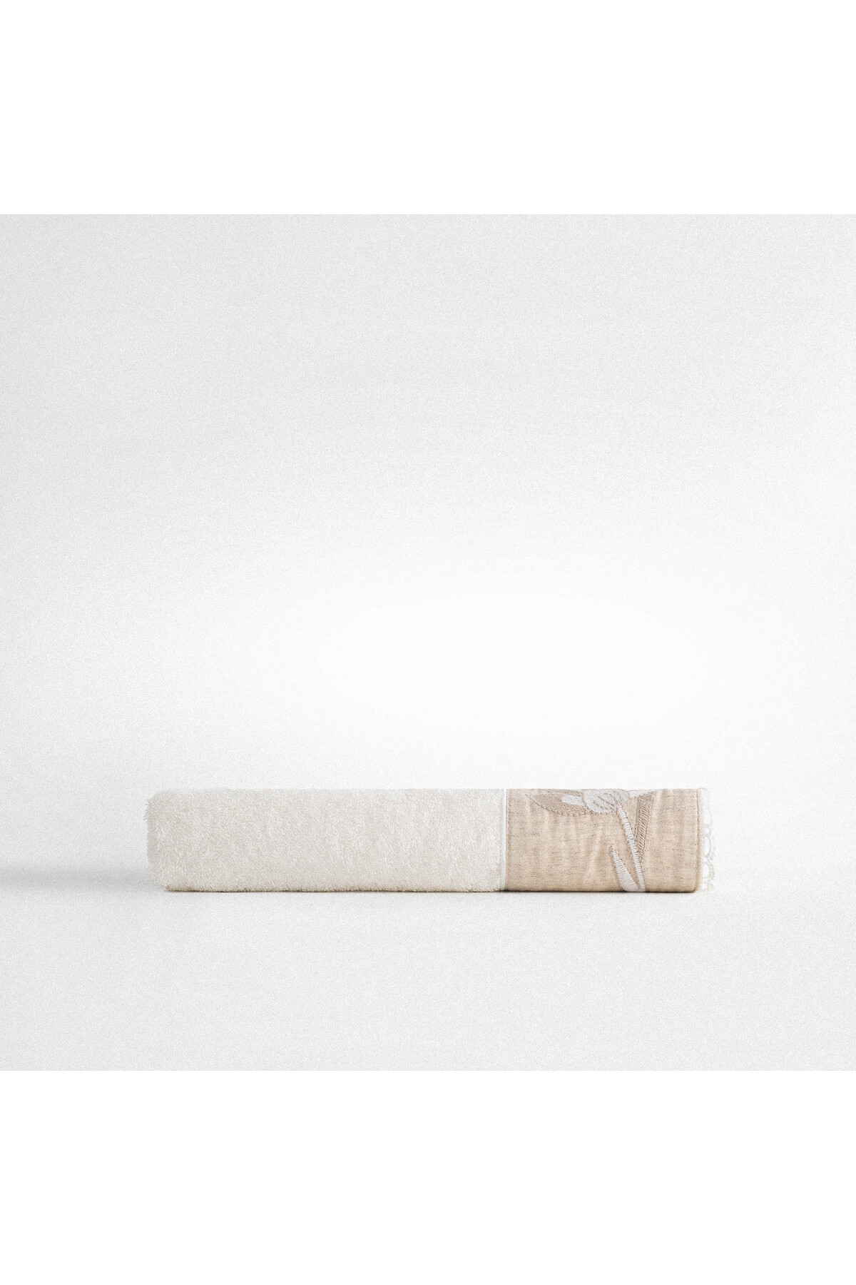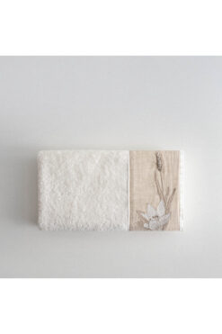Ecocotton Mihra El Yüz Havlusu %100 Organik Pamuk Keten Bordürlü El Nakışlı Krem 50×90 Cm
