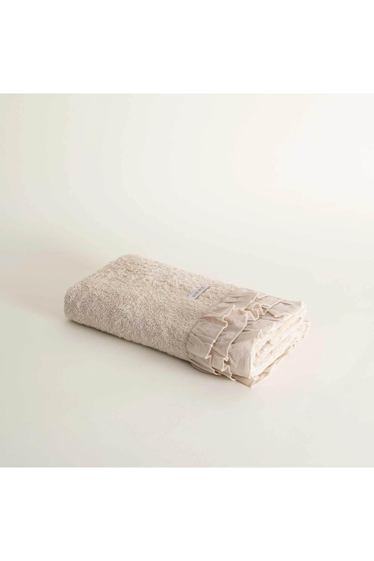 Ecocotton Miranda El Yüz Havlusu %100 Organik Pamuk Fırfırlı Bej 50×90 Cm