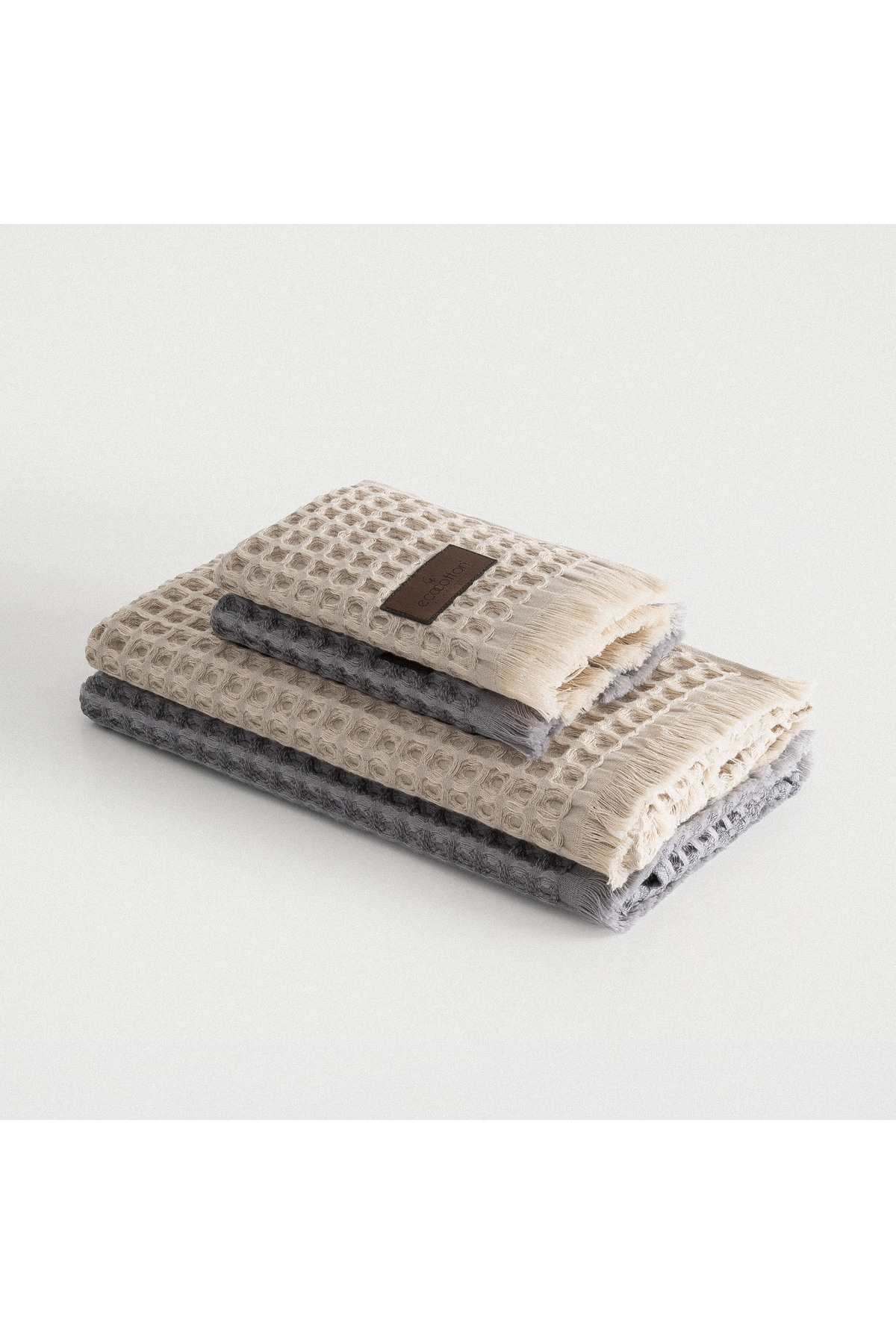 Ecocotton Seren 4’lü Havlu Seti %100 Organik Pamuk Waffle Pike Bej-Antrasit 30*50-50*90