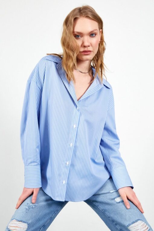 EDITION Mavi Ince Çizgili Pamuk Oversize Rahat Kalıp Kadın Basic Gömlek | Ek334864-7432 en ucuz fiyata kozmetikara.com sitemizden sipariş verebilirsiniz.