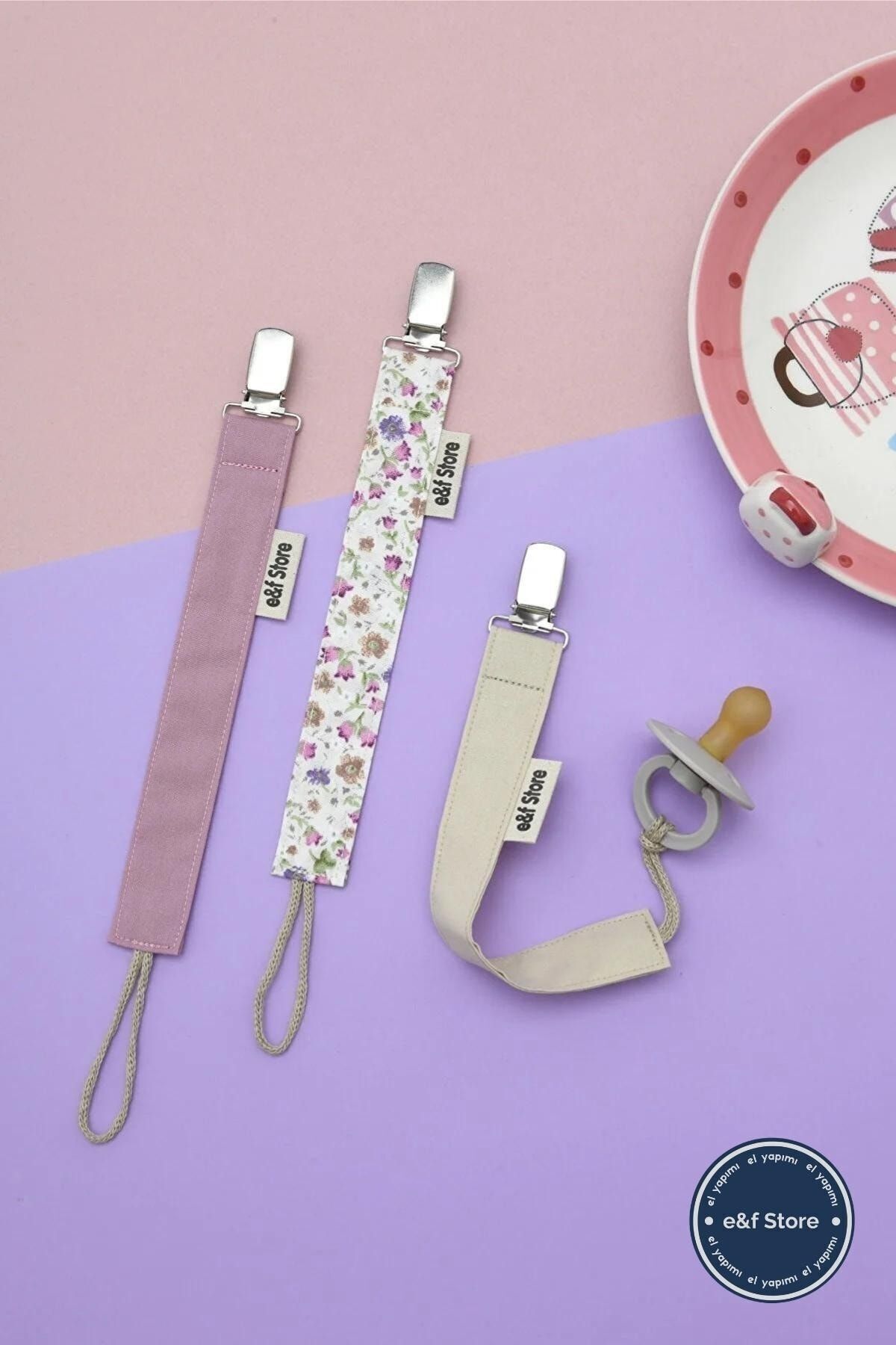 e&f Store Sertifikalı Pamuklu Emzik Askısı - 3'lü Set - Gül Kurusu, Bej, Çiçekli - Bebek Emzik Zinciri ürünü ucuz fiyat, hızlı kargo imkanı ile hemen sitemizden sipariş verin.