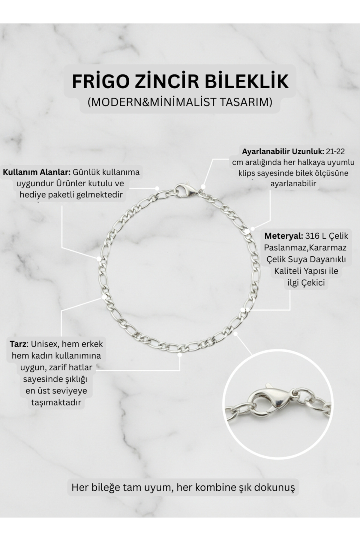 TOMKORS Erkek yüzde yüz çelik bileklik zincir 2li set kararmaz renk atmaz paslanmaz solmaz