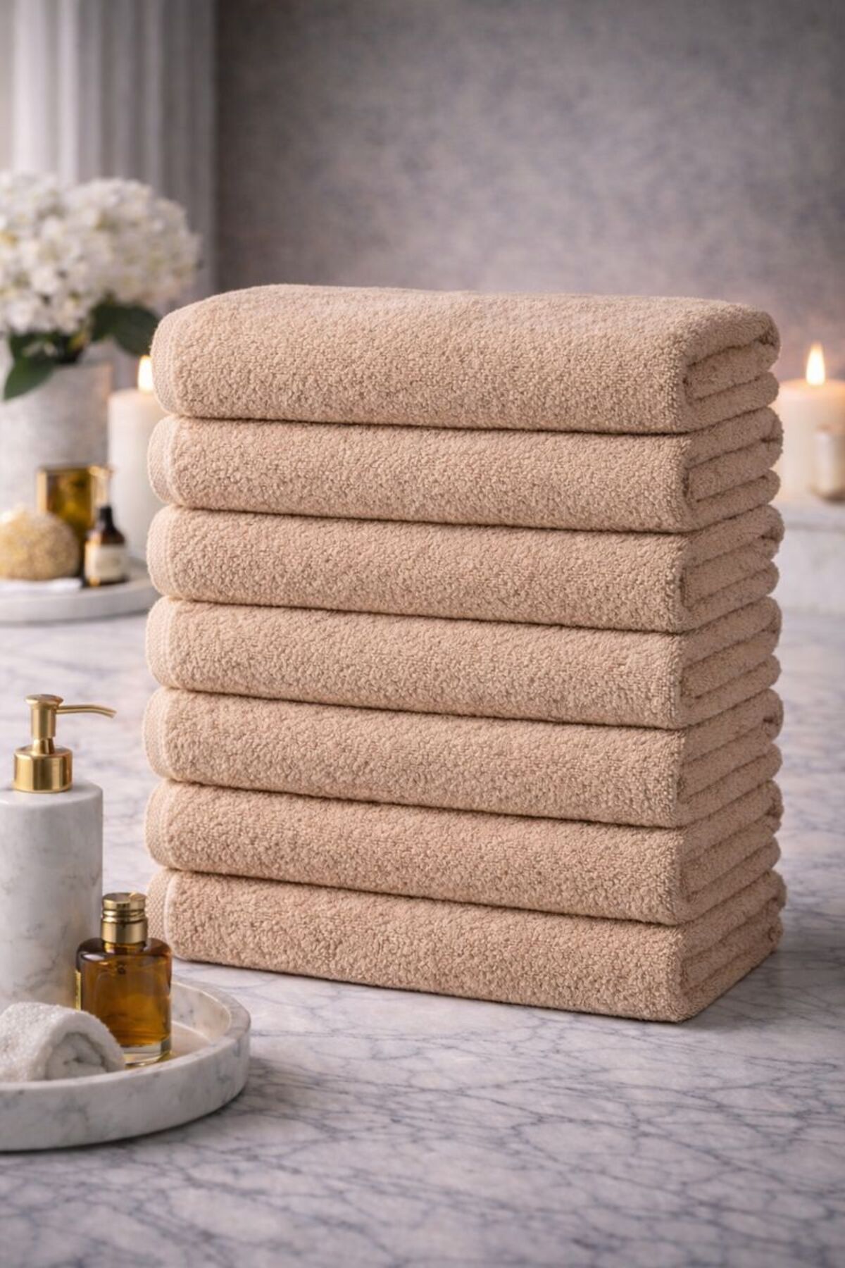 Elaganya Bej Spor Fitness Havlusu Leke Tutmayan Kuaför Berber Havlu 50×90 Cm 8 Adet