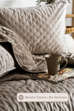 REYS Kapitoneli Çift Kişilik Yatak Örtüsü Takımı 230×250 50×70 2 Adet Yastık Kılıfı – GRİ –