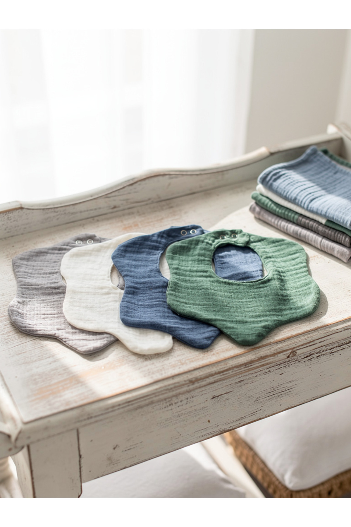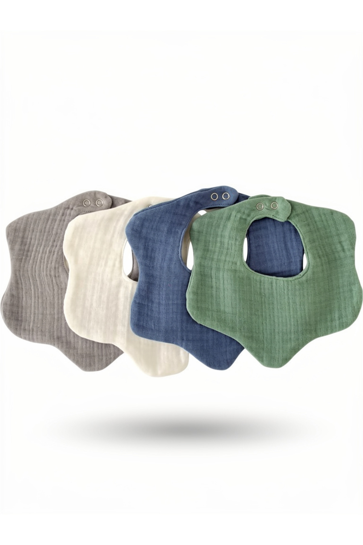 elibaby 4’lü %100 Organik Pamuk 8 Katlı Multi Müslin Çiçek Bebek Salya Mama Önlüğü,Yakalık Mavi,Yeşil