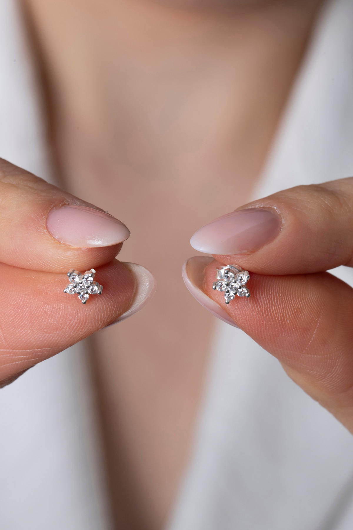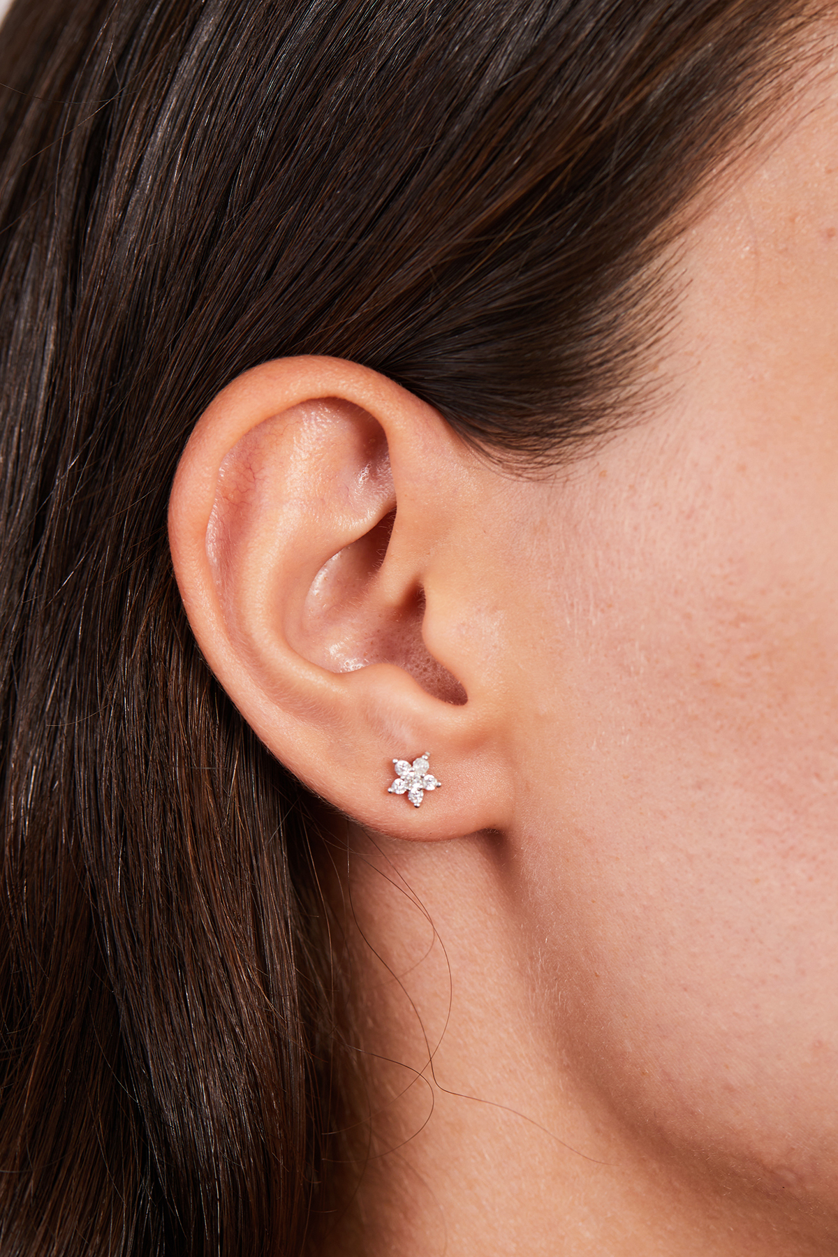 Elika Silver 925 Ayar Gümüş Damla Kesim Zirkon Taşlı Lotus Çiçek Küpe