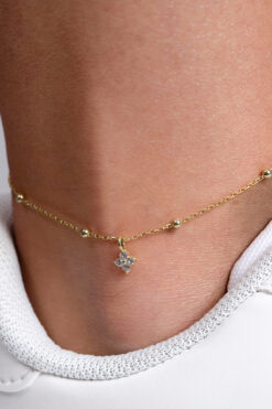 Elika Silver 925 Ayar Gümüş Top Zincirli Zirkon Taşlı Minimal Halhal / Altın Kaplama