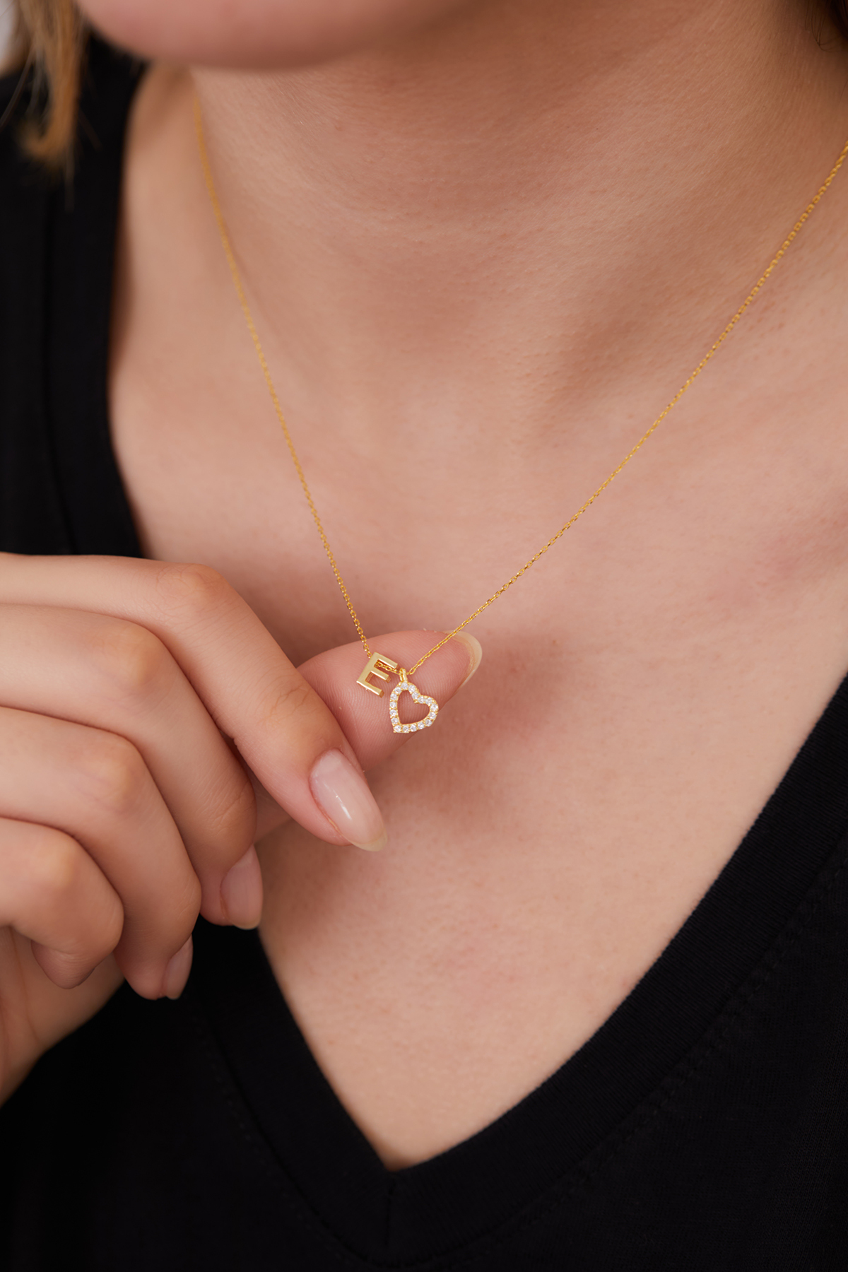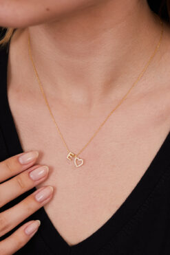 Elika Silver 925 Ayar Gümüş Zirkon Taşlı Kalp Model E Harfi Kolye ELKSLVR7747