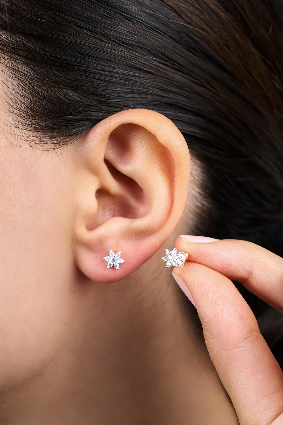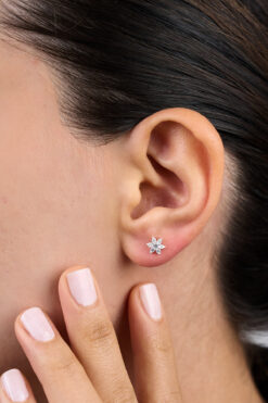 Elika Silver 925 Ayar Gümüş Zirkon Taşlı Lotus Çiçeği Küpe