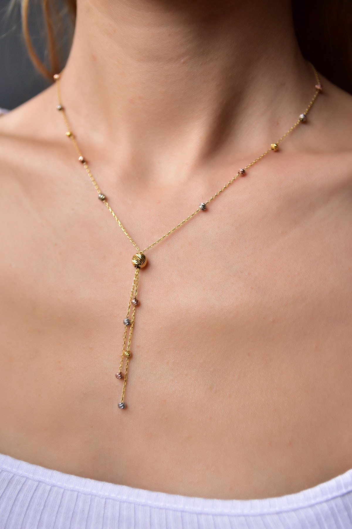 Elika Silver Kadın 3 Renk Dorika Toplu 925 Ayar Gümüş Kolye