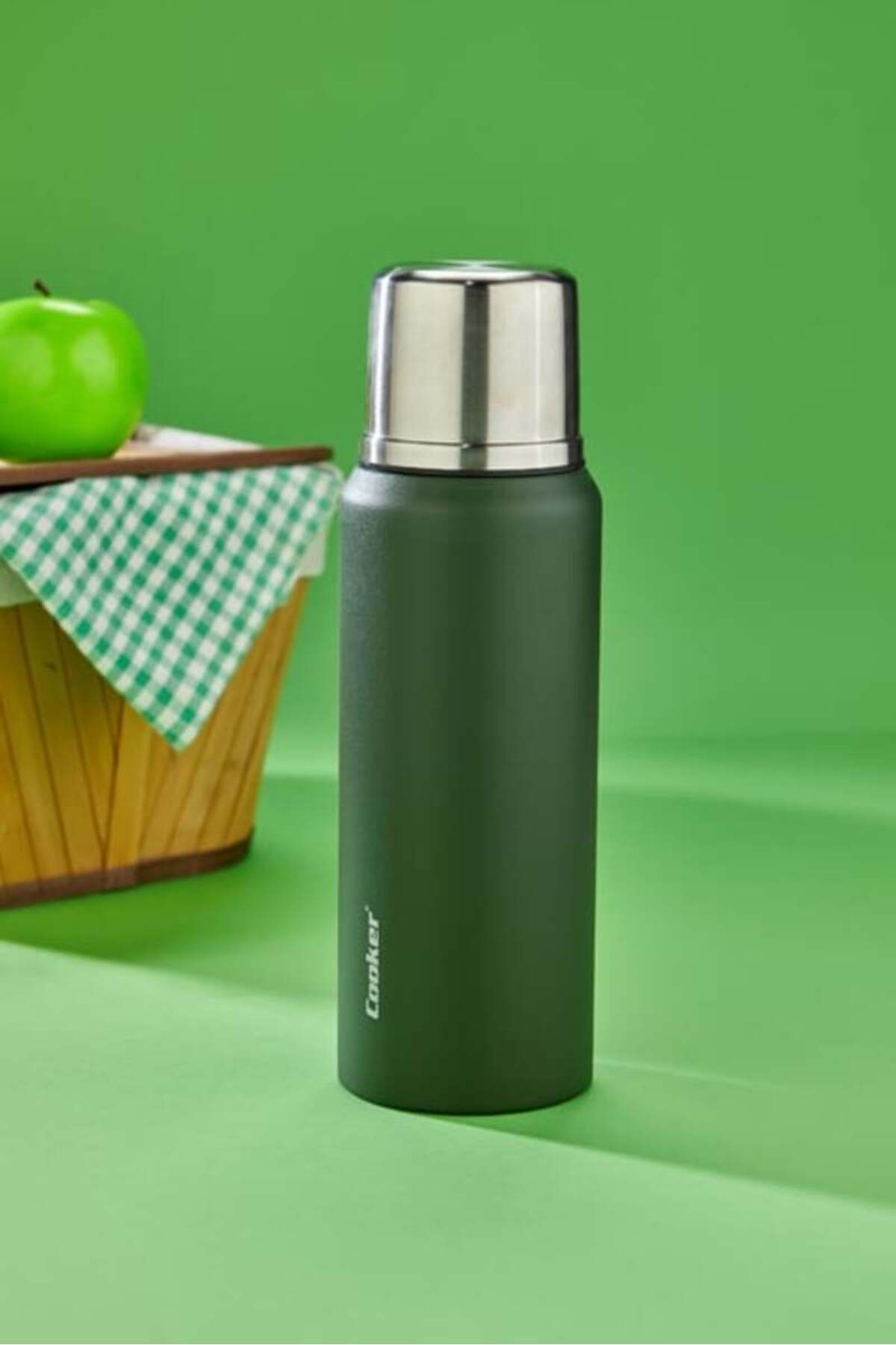 Elista 1 Litre Çift Katlı Çelik Termos-24 Saat Sıcak, 48 Saat Soğuk,(Kamp, Piknik, Ofis, Seyahat) Yeşil