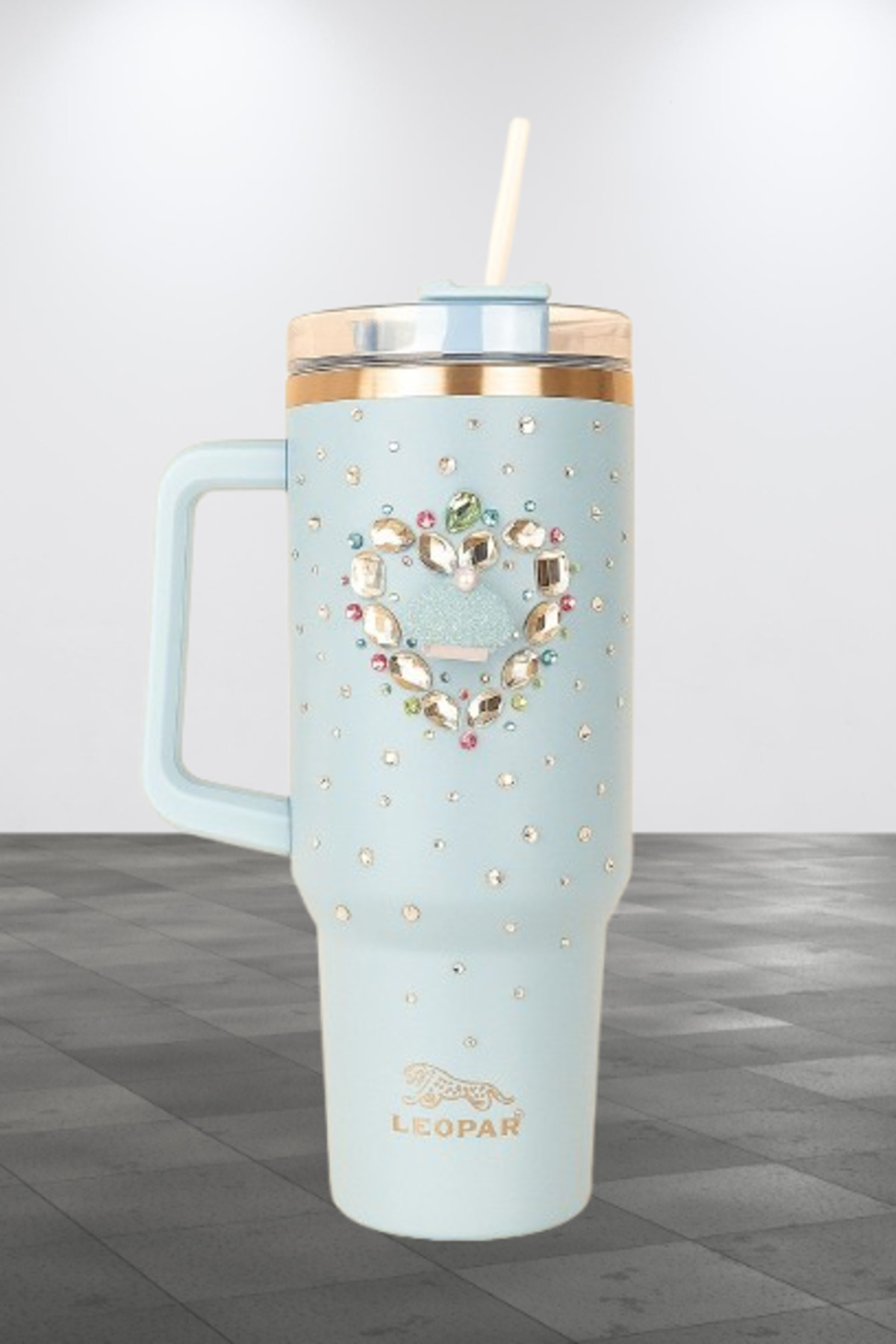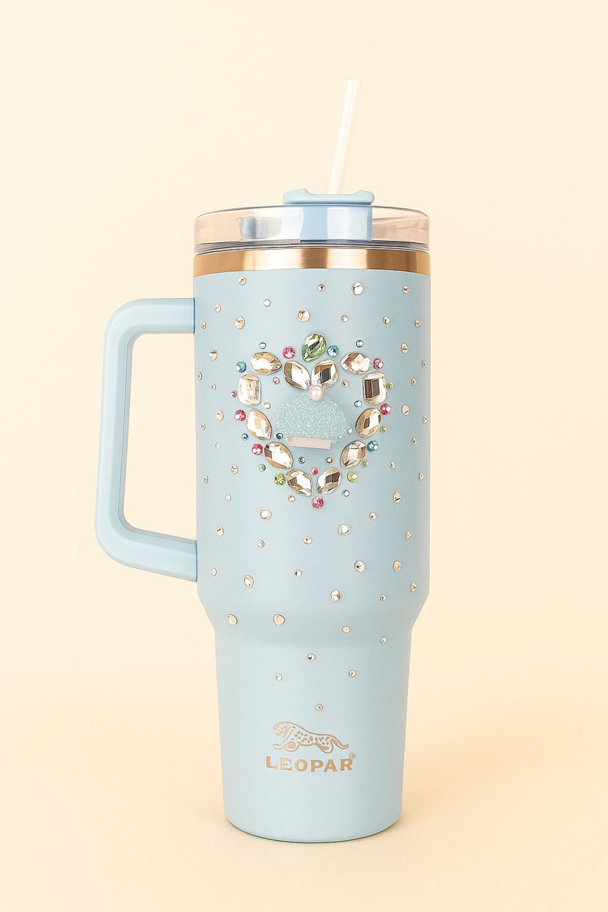 Elista Pipetli 1,2 litre Kulplu Çelik Termos Renkli Üzeri Taş İşlemeli BEBE MAVİSİ