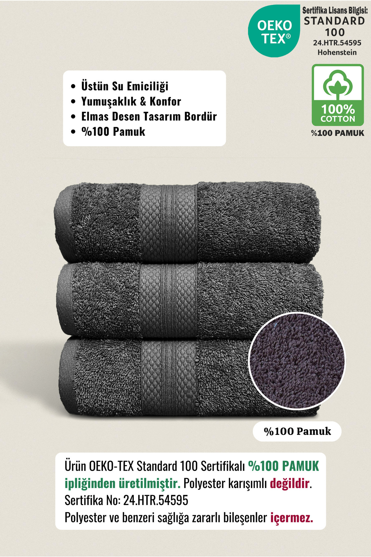 Ellaline 3'lü Havlu Seti %100 Pamuk Sertifikalı Elmas Desen Bordür Antrasit El / Yüz Havlusu Takımı 50x80cm ürünü ucuz fiyat, hızlı kargo imkanı ile hemen sitemizden sipariş verin.