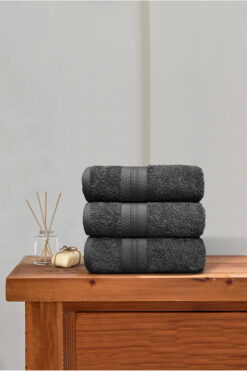 Ellaline 3’lü Havlu Seti %100 Pamuk Sertifikalı Elmas Desen Bordür Antrasit El / Yüz Havlusu Takımı 50x80cm