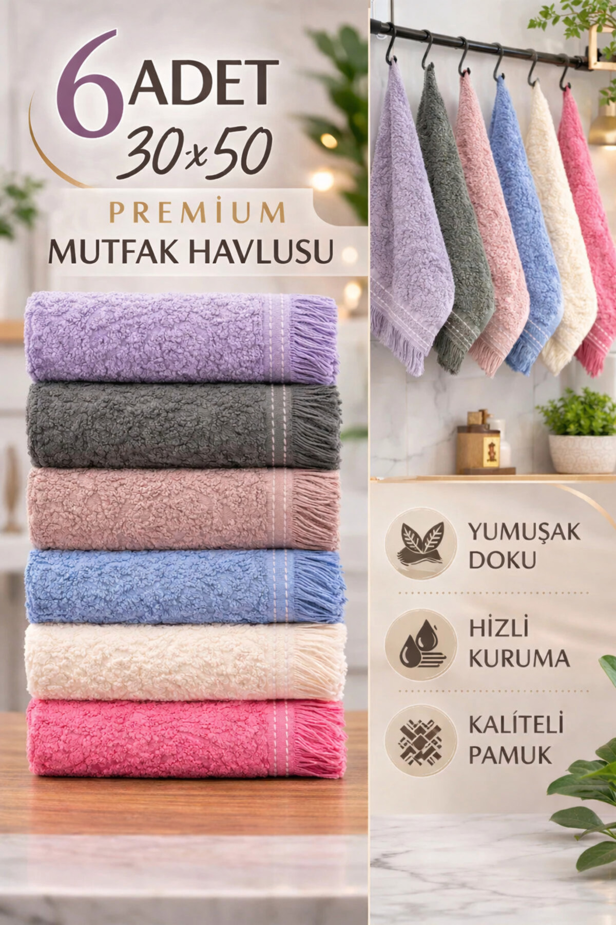 Elmas Home Collection 6 Adet Mutfak Havlusu 30×50 cm | Kurulama Bezi | Pamuk El Havlusu Seti | Çok Renkli