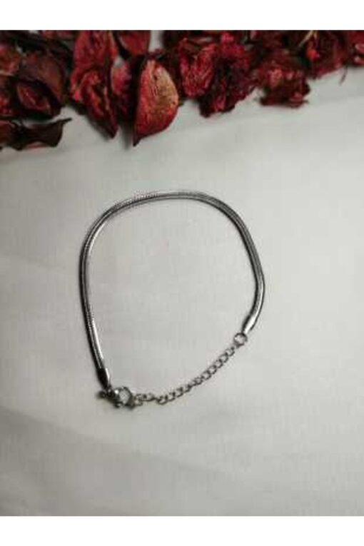 Elvinege Aksesuar Gümüş Renkli Çelik Italyan Yassı Zincir Bileklik