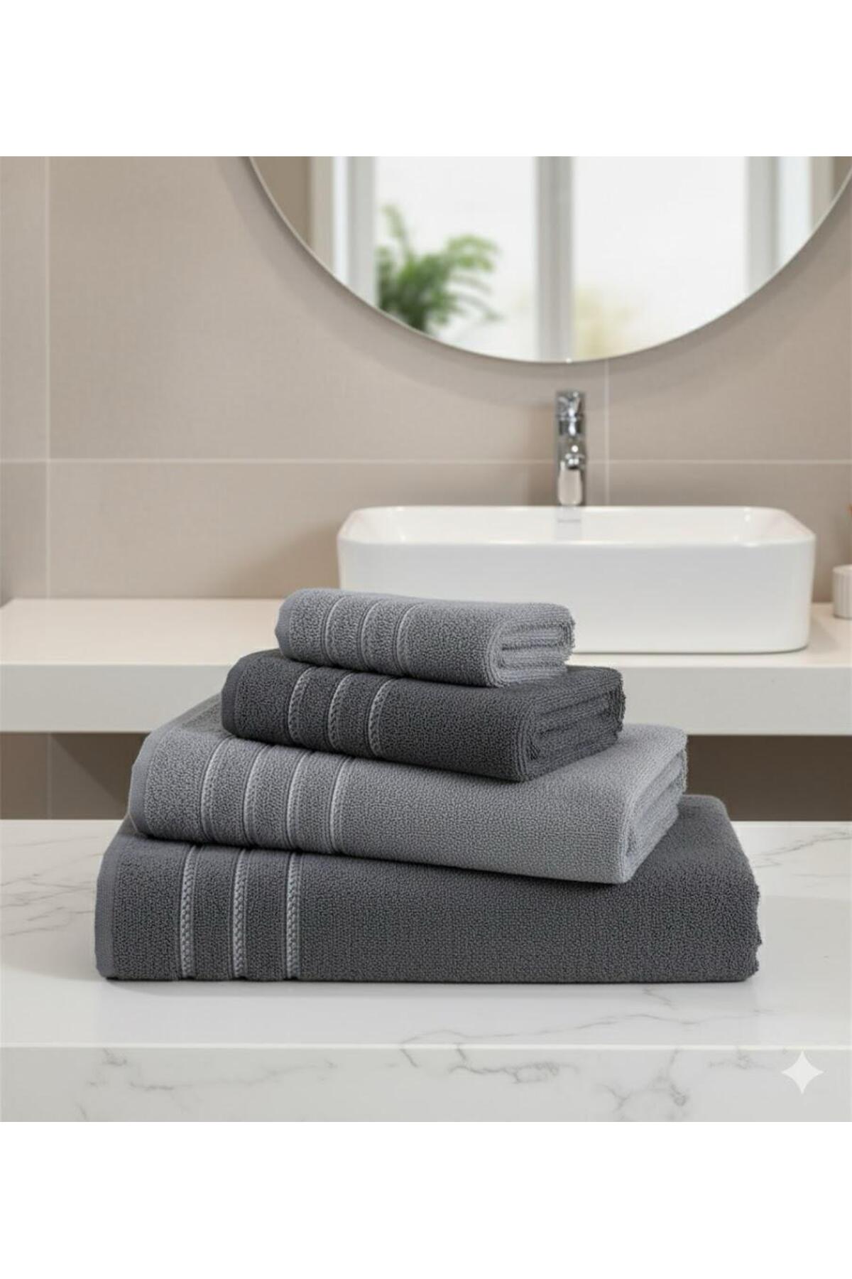 elvira concept Lilyum Pamuklu 4’lü Banyo Havlu Seti Hamam Takımı Günlük Çeyizlik Havlu Takımı