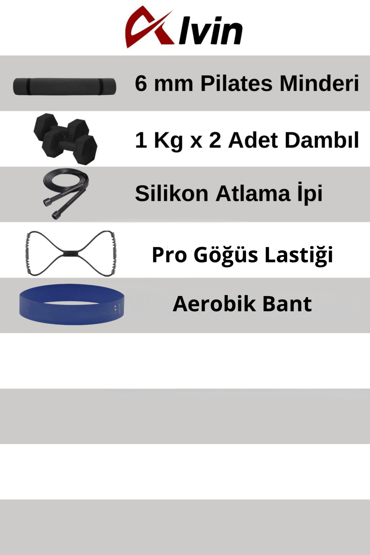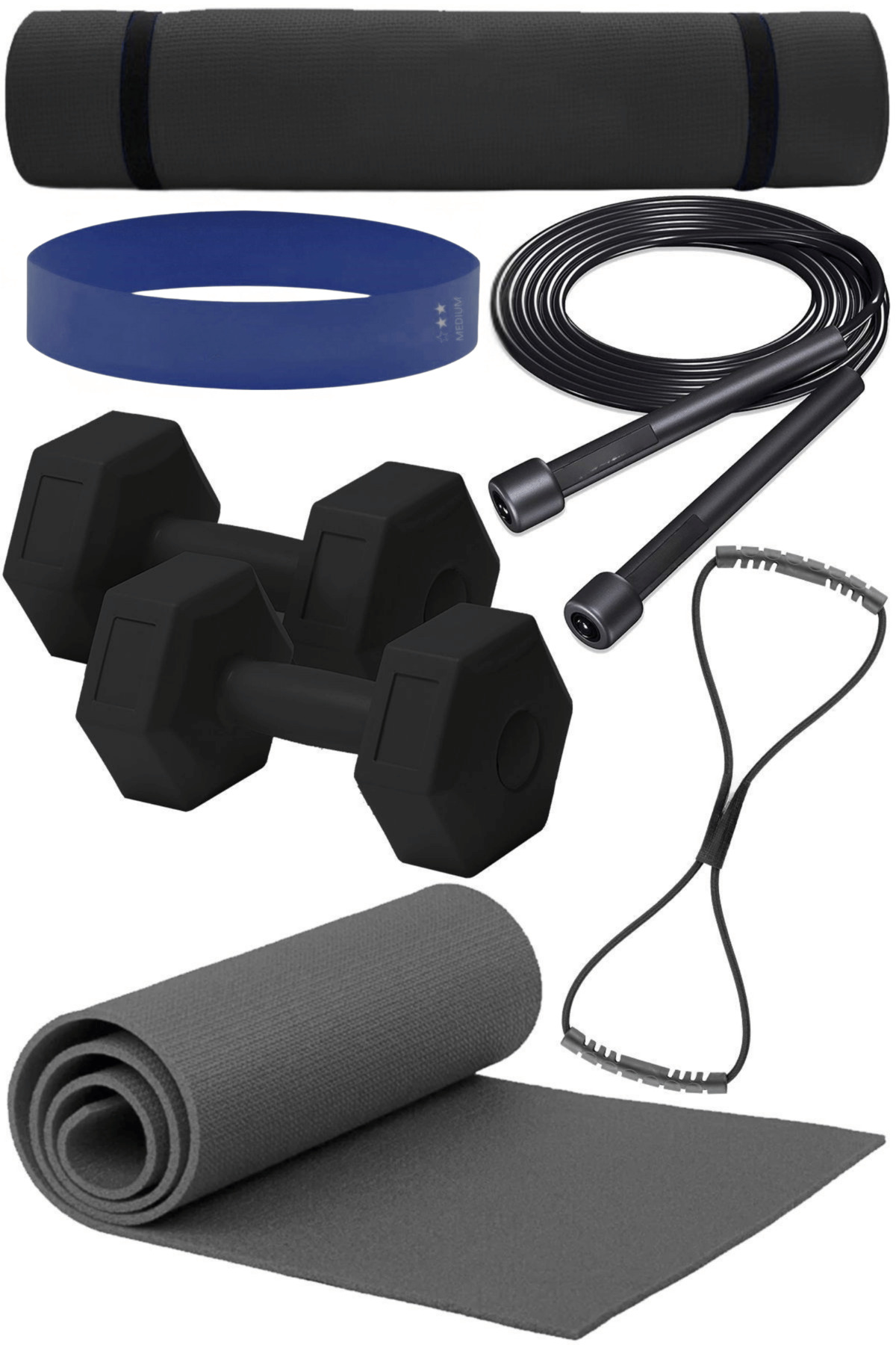 Leyaton Pilates Minderi 20 cm Pilates Topu Squat Band Direnç Lastiği Atlama İpi Dambıl Seti Pilates Seti