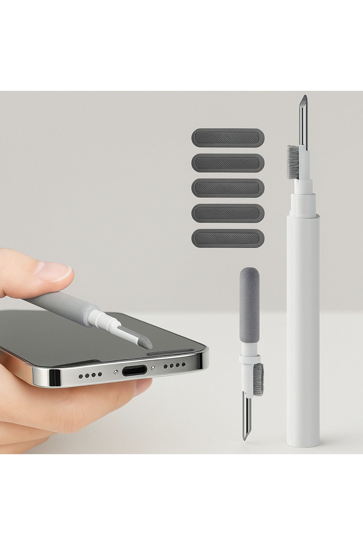 • Temizlik Aparatları: Mikro fırça ve ped ile hoparlör, şarj girişi, kamera kenarları gibi zor alanlara kolay temizlik.
