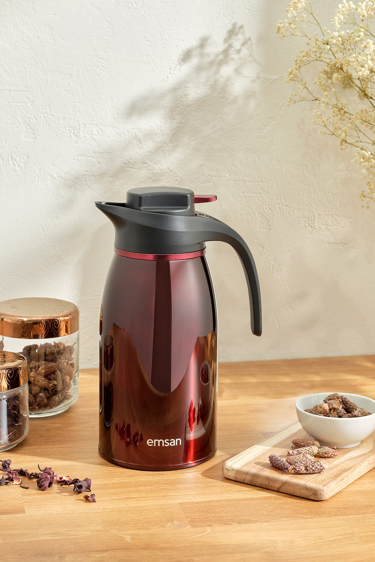 Emsan Gama 12 Saat Sıcak ve Soğuk Tutan Çelik Termos Bordo 2 Litre