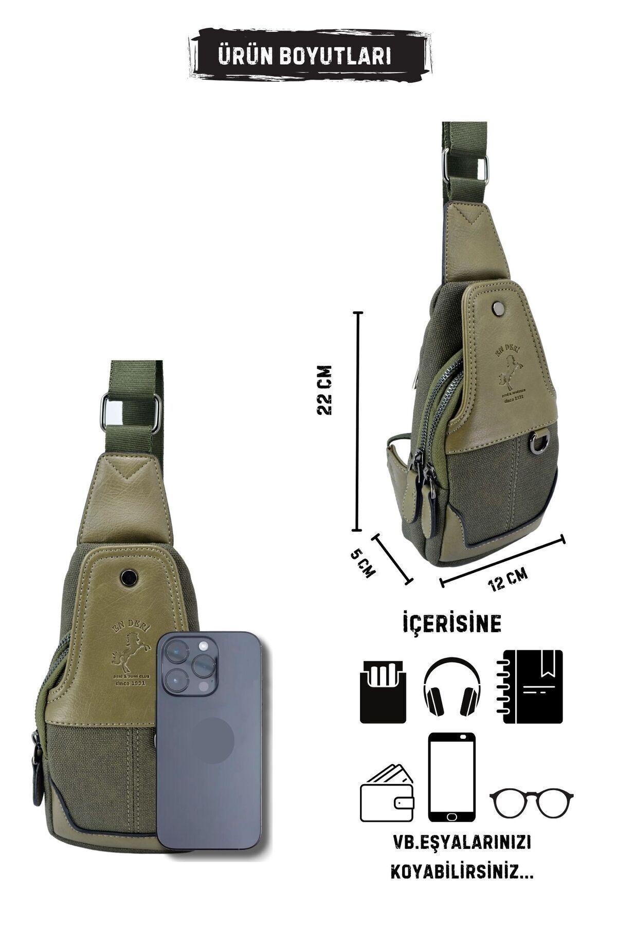en deri Haki Kanvas Ayarlanabilir Çapraz Askılı Omuz Çantası 7044