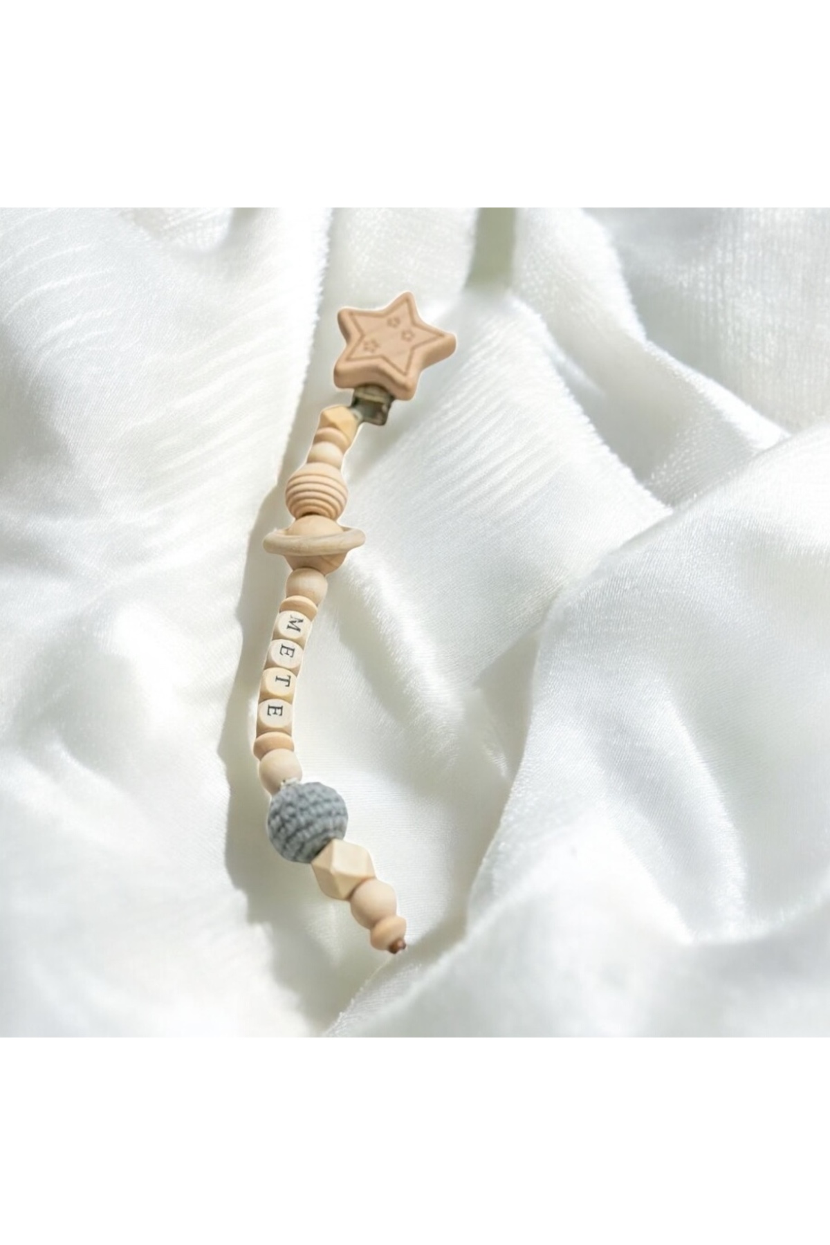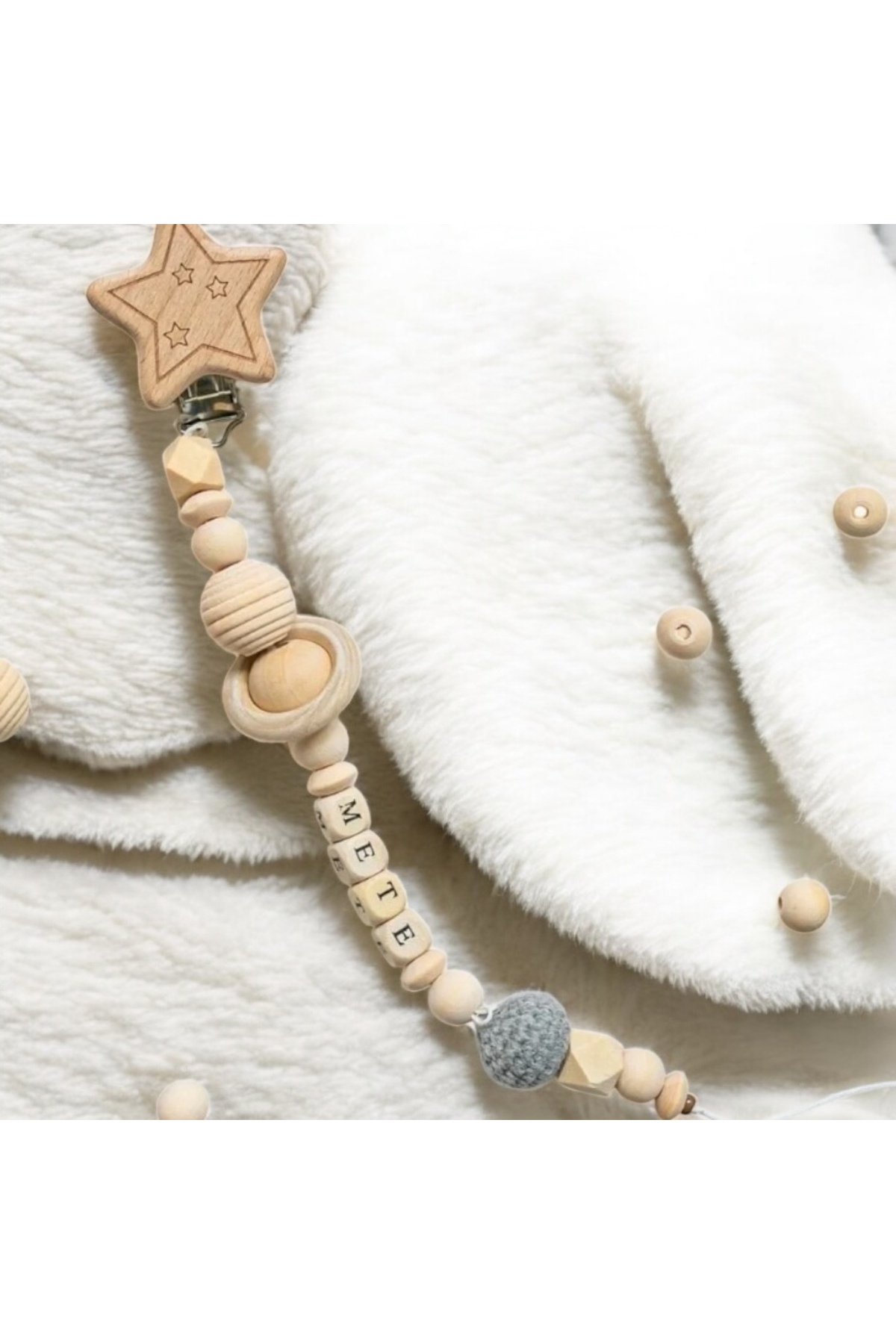 ENCİVA Doğal Ahşap Emzik Zinciri İsme Özel Bebek Askısı hediyelik yeni doğan