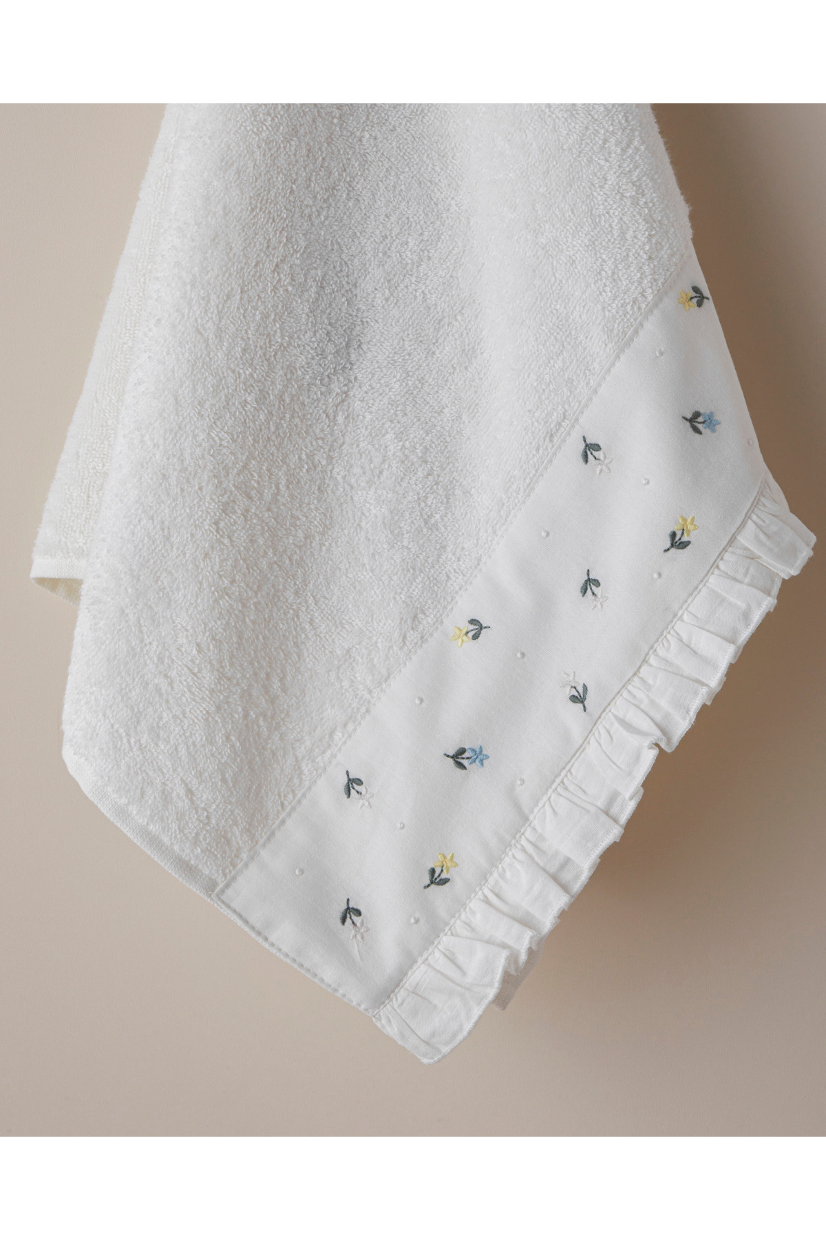 English Home Floral Garden Pamuk Nakışlı Yüz Havlusu 50×80 cm Ekru