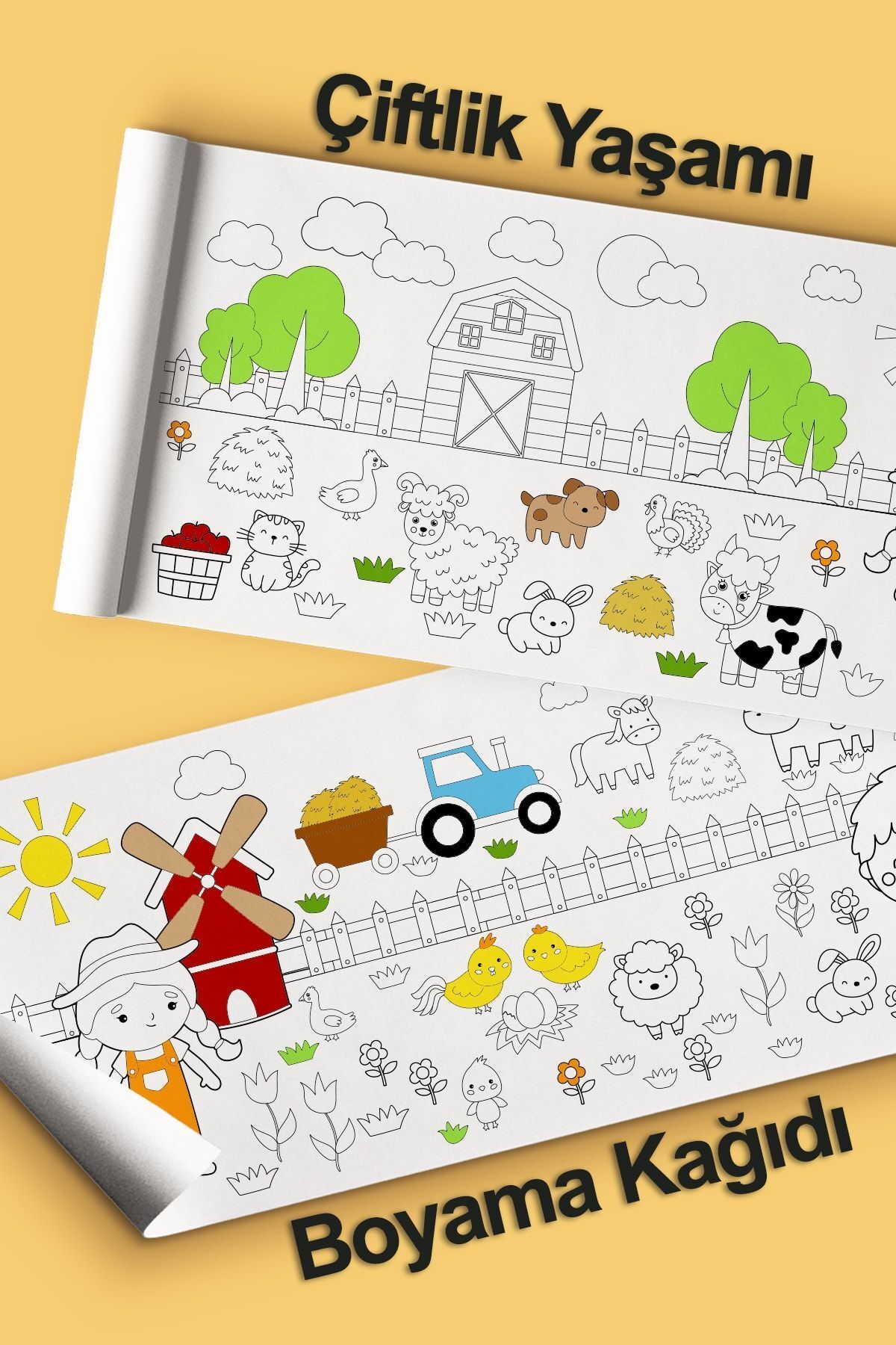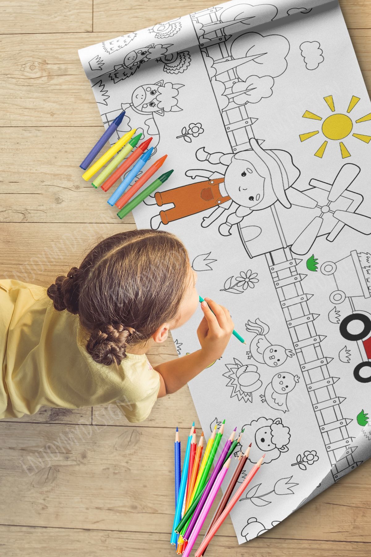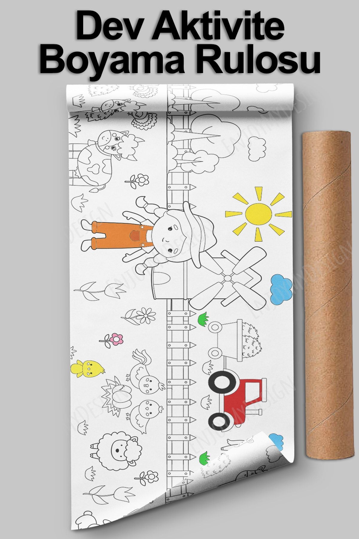 Enjoymydesign Çiftlik Yaşamı Dev Boyama Kağıdı 2.5 Metre Tatil Aktivite Rulosu – Çocuk Eğitici Boya Rulo Kağıt