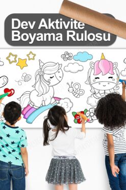 Enjoymydesign Unicorn Temalı Aktivite Boyama Kağıdı 2.5 Metre Rulo – Bebek Ve Çocuk Için Eğitici Aktivite Kağıdı