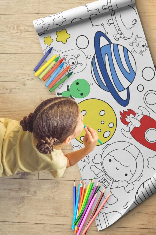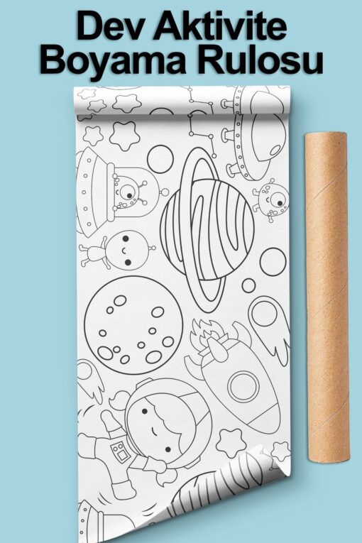 Enjoymydesign Uzay ve Gezegenler Dev Boyama Kağıdı 2.5 Metre Tatil Aktivite Rulosu – Çocuk Eğitici Rulo Kağıt