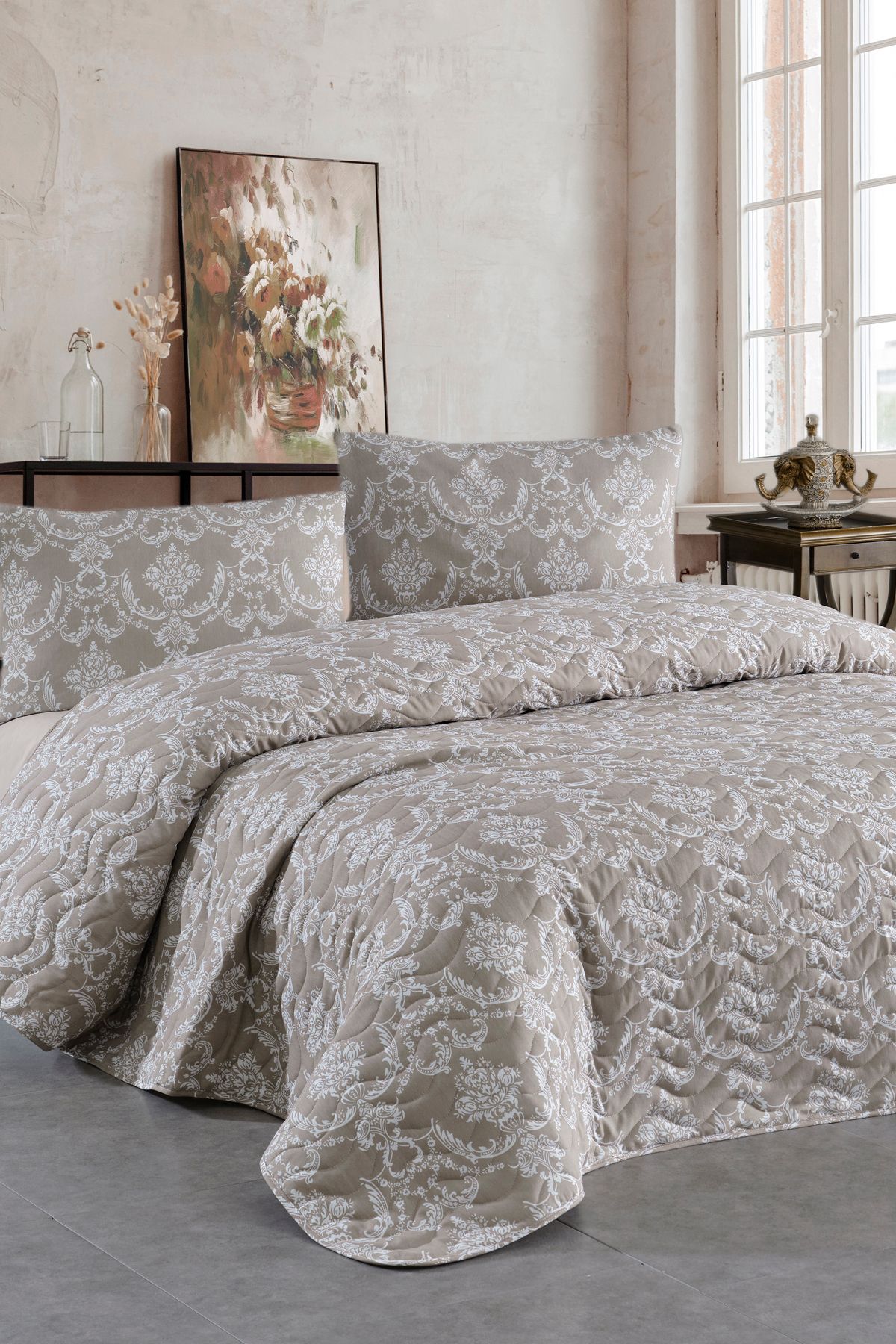 Bella Maison Flores Kapitoneli Çok Amaçlı Çift Kişilik Yatak Örtüsü Seti (240×220 cm)