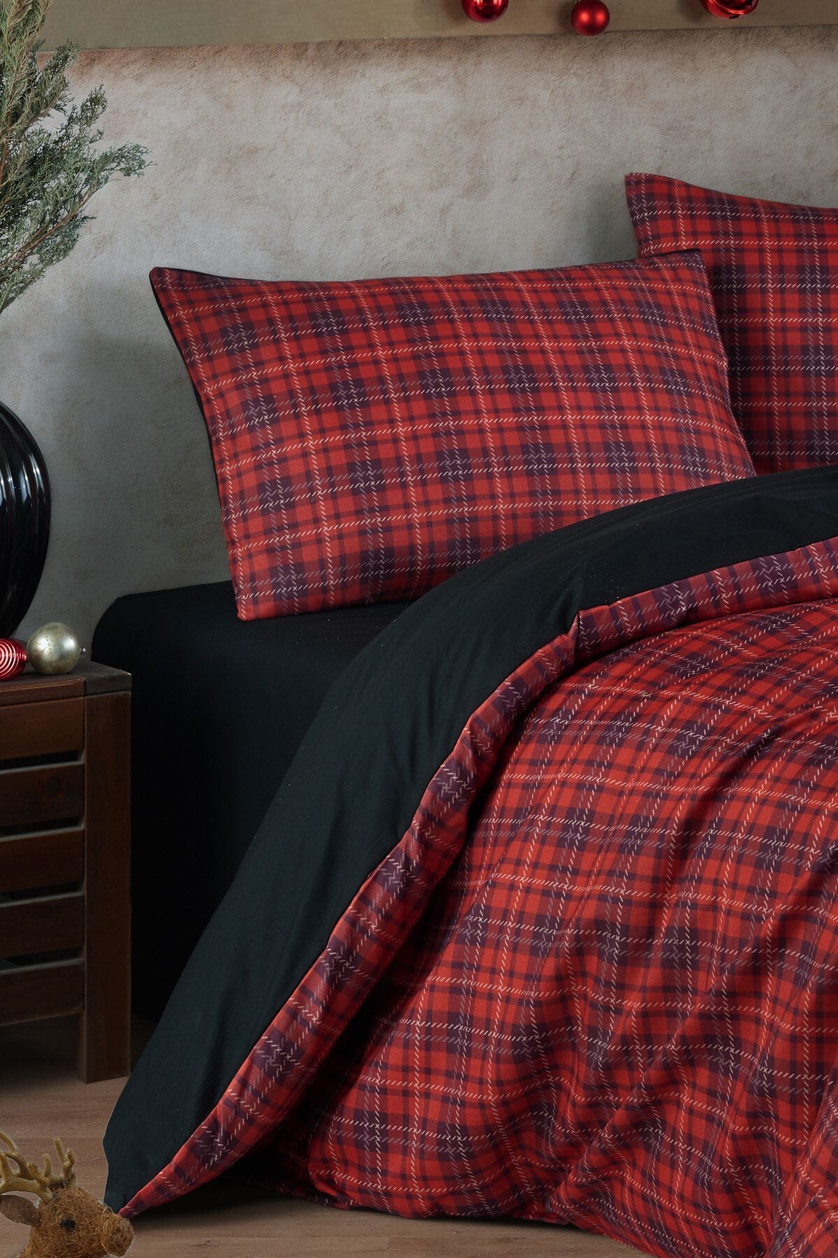 Enlora Home Mature Nevresim Seti Çift Kişilik Iskoç Kırmızı