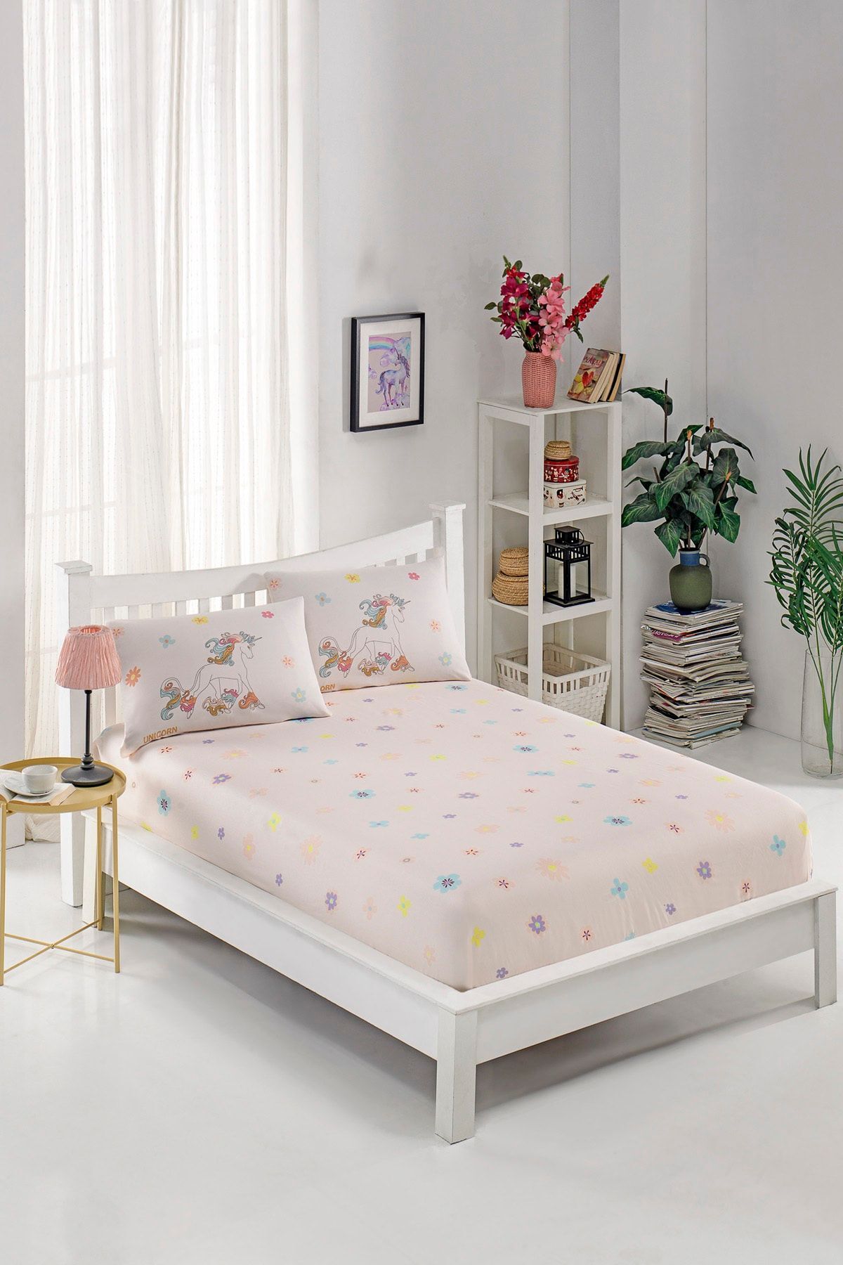 Enlora Home Pes Lastikli Çarşaf Seti Tek Kişilik Unicornlar Pembe