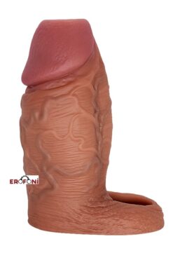 Erofoni Ucu Açık Çift Katmanlı Testislere Geçirilebilen 11.5 CM Damarlı Premium Realistik Süper Penis Kılıfı ürünü ucuz fiyat, hızlı kargo imkanı ile hemen sitemizden sipariş verin.