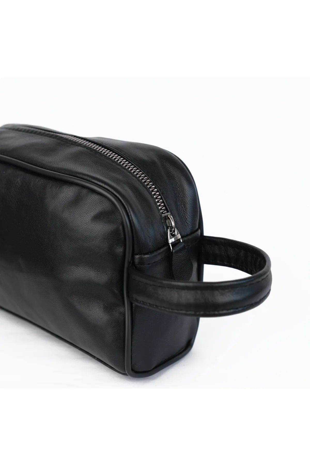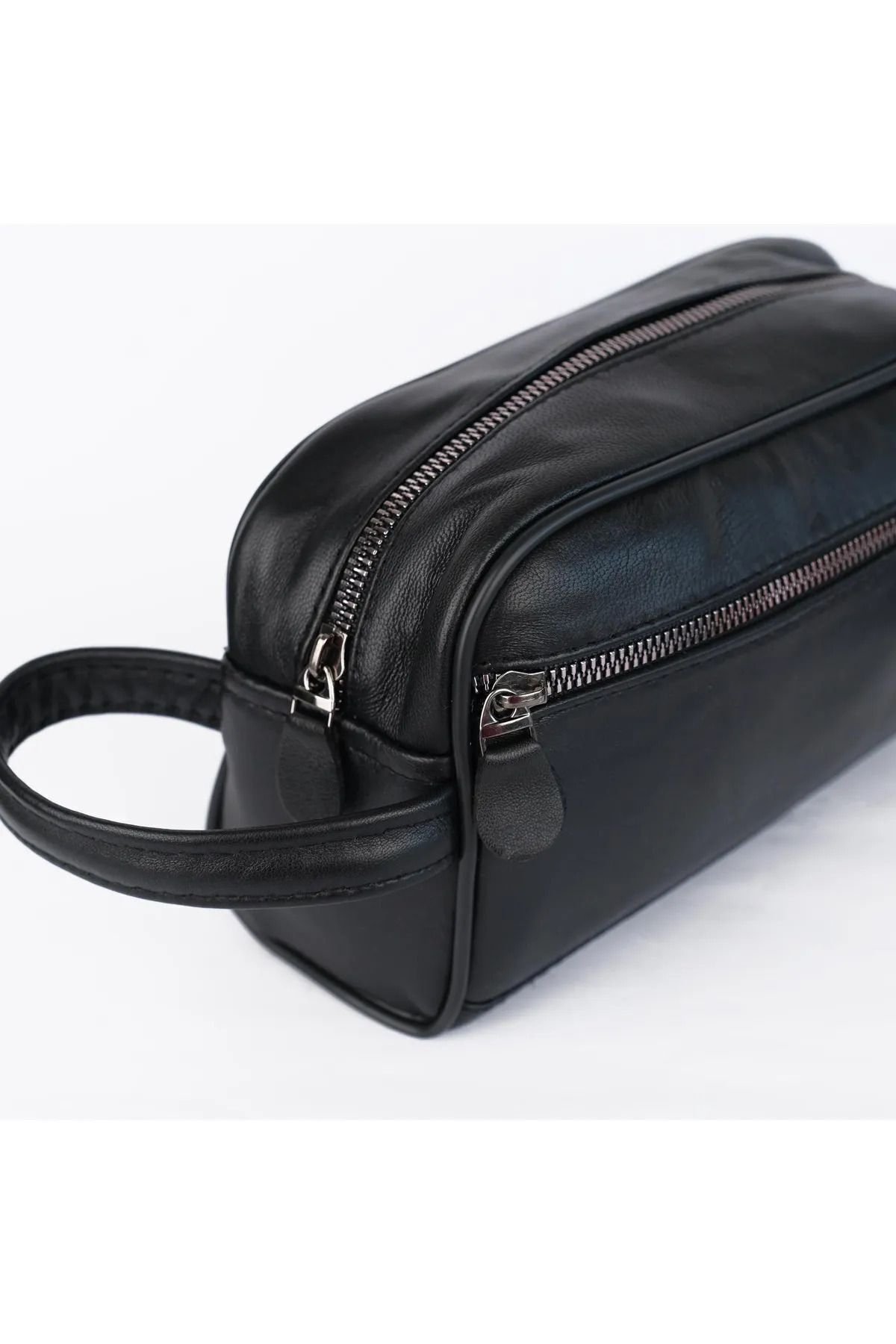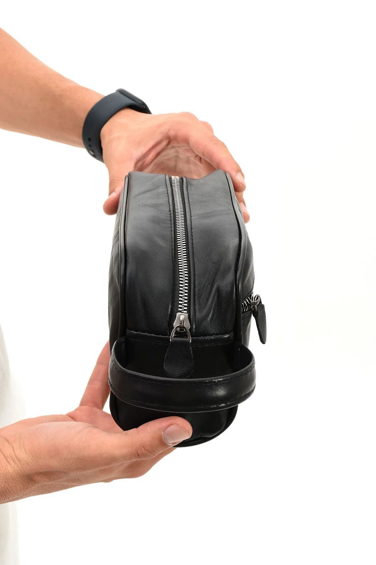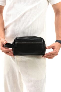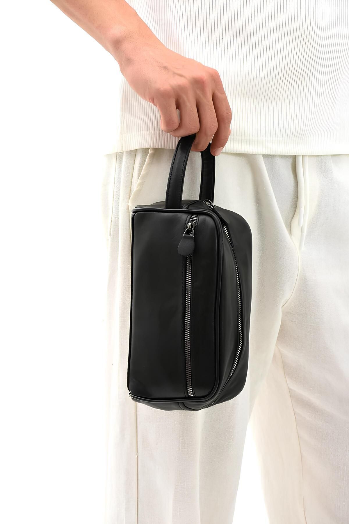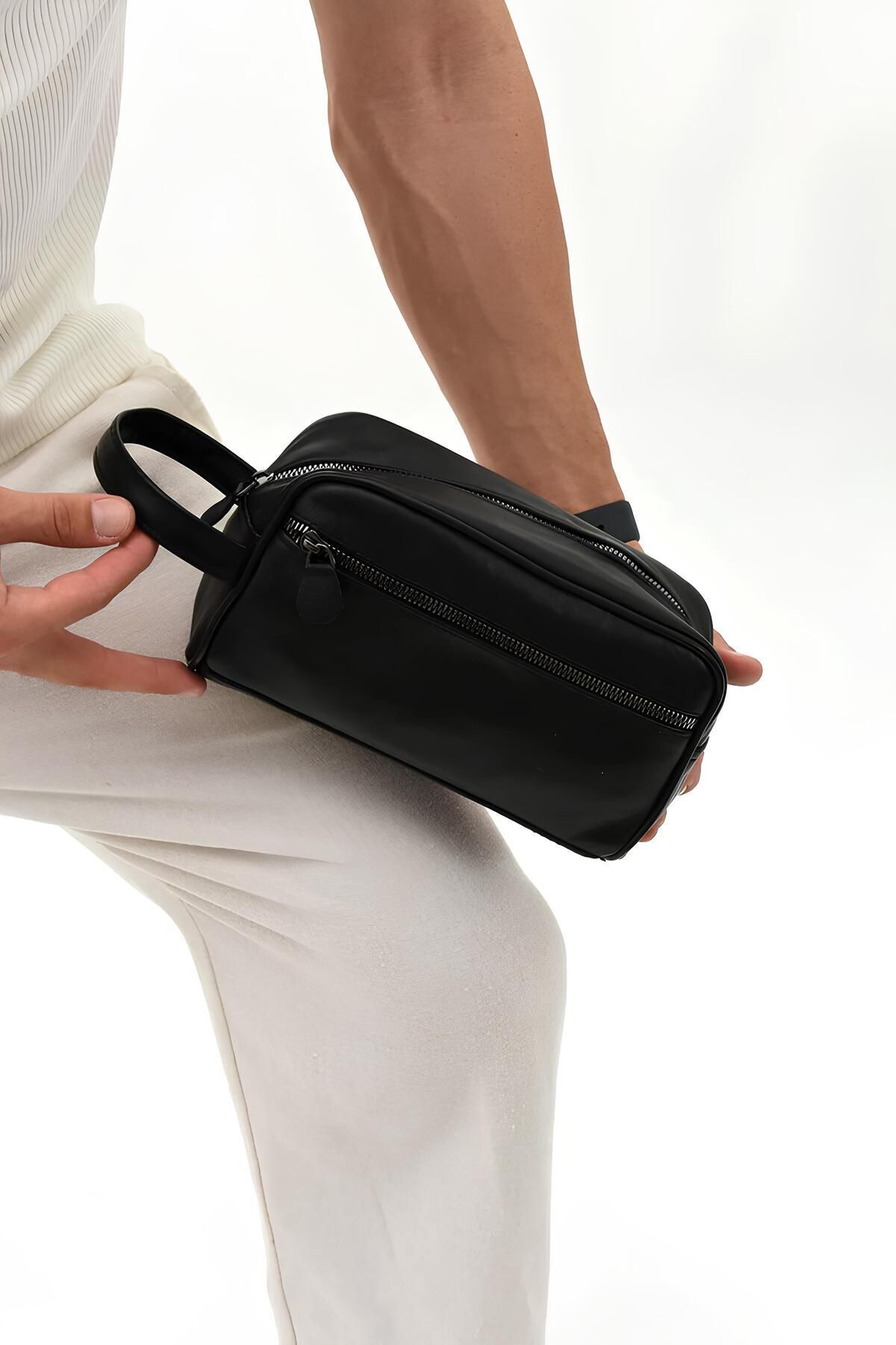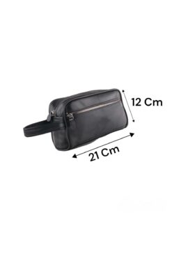 Erzeno Siyah Hakiki Deri Erkek Tıraş el Portföy&Clutch Bakım Çantası