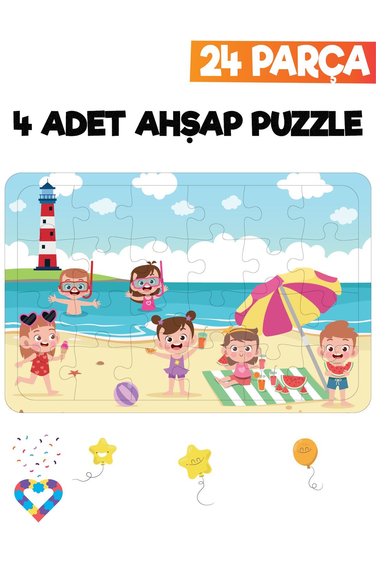 esatoys 24 Parçalı Montessori Ahşap Puzzle – 4-5 Yaş Eğitici Oyuncak