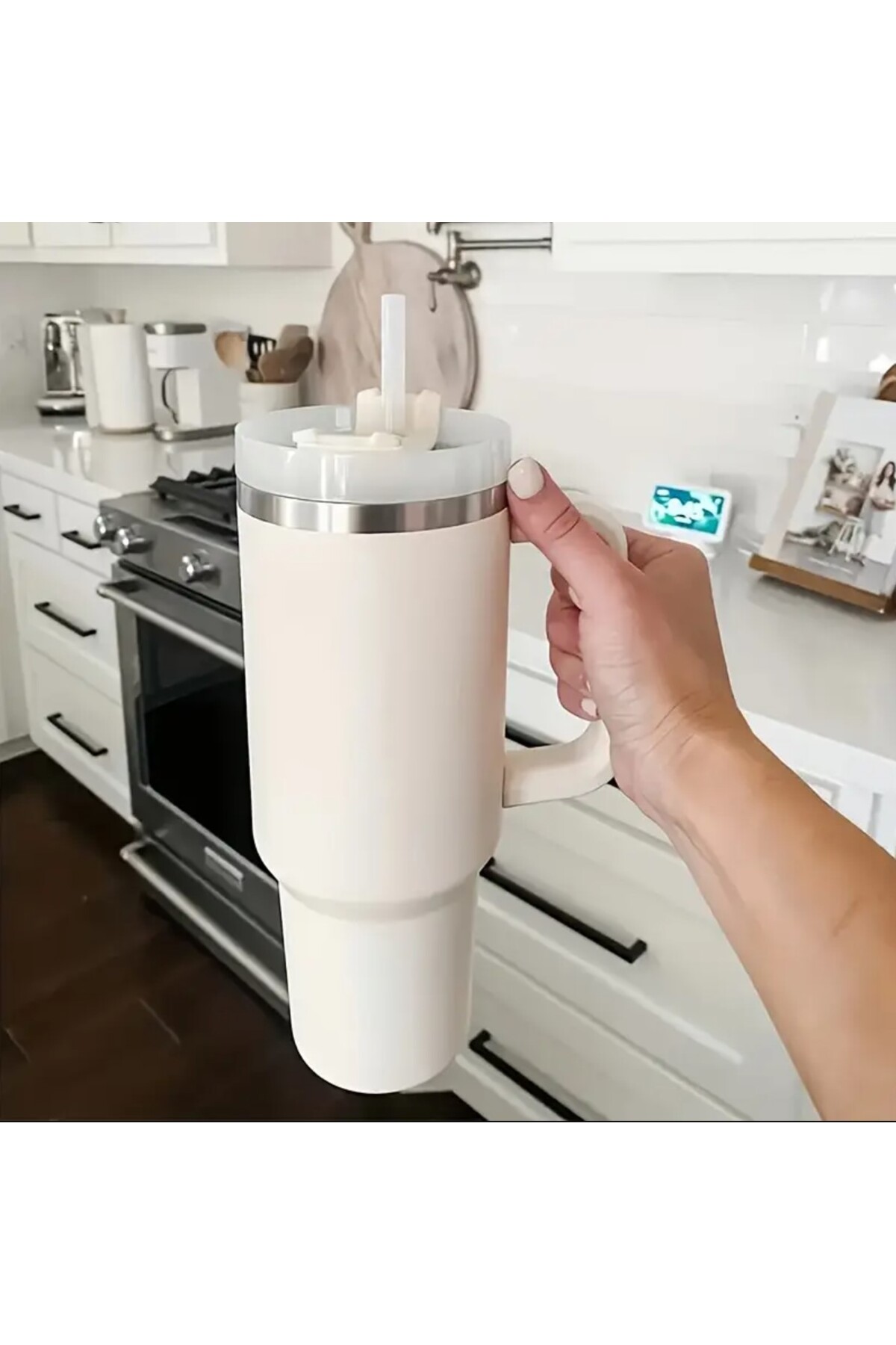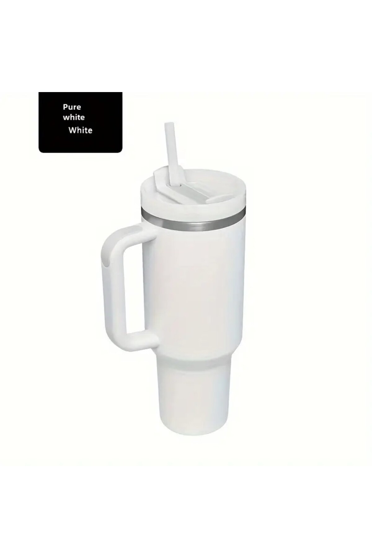 esdekor 40oz Paslanmaz Çelik Yalıtımlı Bardak Sap Samanlı BPA FREE Saf Beyaz 1 Adet