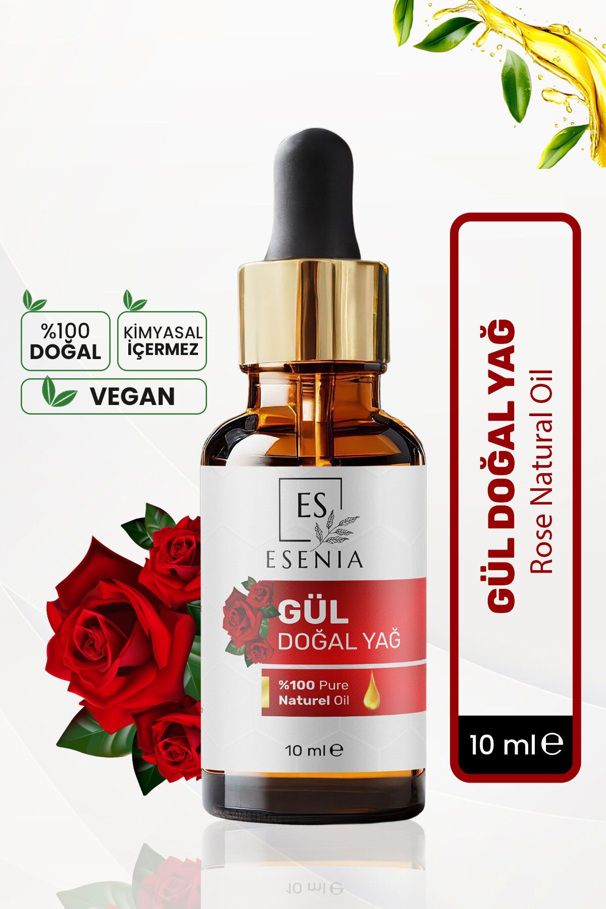 ESENIA Gül Yağı %100 Saf ve Doğal Bitkisel Uçucu Yağ Rose Essential Oil 10ml