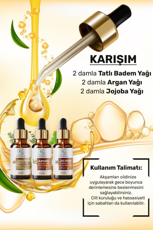 ESENIA Tatlı Badem Argan Jojoba Yağı %100 Saf ve Doğal Damlalık Kapak Katkısız Bitkisel Uçucu Yağ 10ml