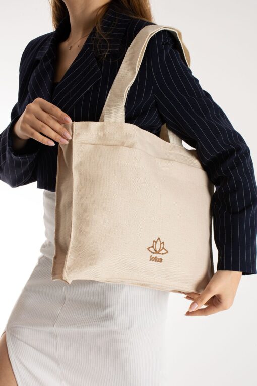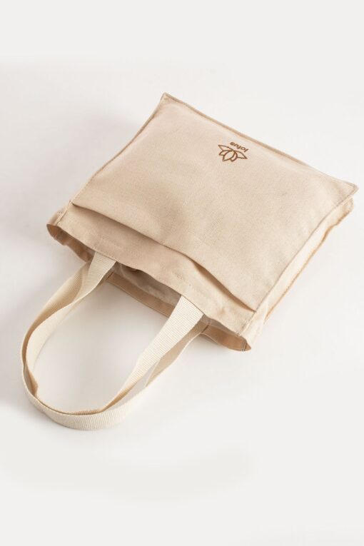 Her yaş grubuna hitap eden, zamansız tasarımıyla dikkat çeken düz desenli keten bez çanta