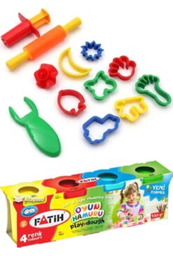 Fatih 4 Renk 520gr Oyun Hamuru & 12 Parça Colorbank Mutfak Oyun Hamuru Kalıpları
