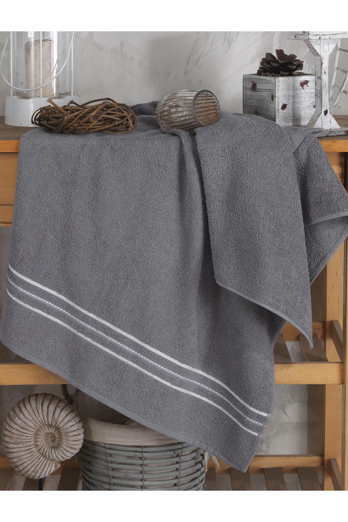 ESMEN Gri Çizgili 50×85 El Havlu