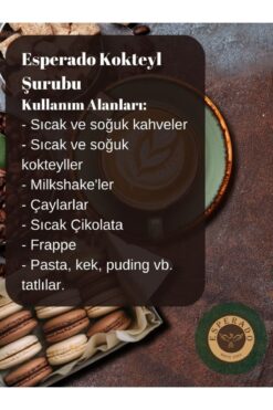 Esperado Kahve Kokteyl Şurubu 250 Ml (3x) Kahve Şurubu Yoğun Aromalı Kahve Şurupları KAHVE ŞURUBU KOKTEYL ŞURUBU BARİSTA VE ŞEFLERİN KAHVE SEVERLERİN TERCİHİ Esperado Kahve Kokteyl Şuruplarının özel aroma ve kıvamı sayesinde birbirinden lezzetli sunumlar yapabilirsiniz. Sizde 1/8 oranında ölçüyle tadına varabileceğiniz bu muhteşem lezzet ve aromayı mutlaka denemelisiniz. Hazırlanış: Kokteyl